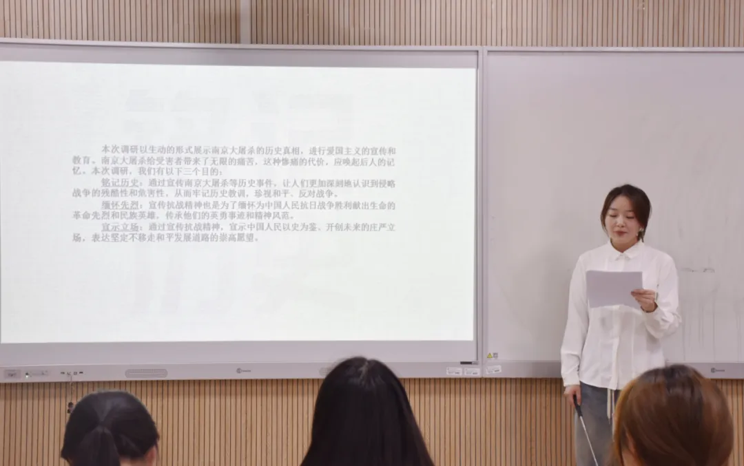 宣讲过程中,项目团队成员以《昭昭前事 惕惕后人》为主题结合项目调研设计、调研实施与分析、社会影响三个方面进行研究宣讲。通过文献调查、实地走访和资料搜寻的方式,项目团队对19 处南京大屠杀遇难同胞纪念地进行调查与研究,调查了解南京大屠杀遇难者丛葬地的基本情况,展示更多关于南京大屠杀的历史细节,进行爱国主义的宣传和教育。为了更好地利用并开发南京大屠杀遇难同胞纪念地的历史资源,调研小组创建了全国首份南京大屠杀“丛葬地”地图和绘本,建成了首个以南京大屠杀丛葬地为主题的VR数字平台,制定了首套针对大中小学生的“丛葬地”研学路线。活动最后,与会同学观看了调研小组参赛视频,并通过与项目团队成员“一对一”问答对“挑战杯”红色专项有更直观地认识和更深入的理解。