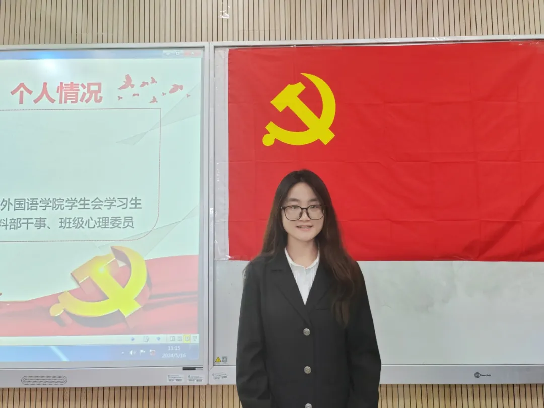 2024年5月16日上午9:50,外国语学院学生第一党支部于崇文楼449教室召开2024年上半年拟发展对象评审答辩会。出席此次活动的有外国语学院学生第一党支部书记朱雨炜老师、副书记赵峥嵘老师,此次答辩会旨在加强对各拟发展对象的党性教育,帮助党组织全面真实地考察拟发展对象,提升党员的发展质量,把握好党员队伍的“入口关”。本次会议由乔梓桐同学主持。