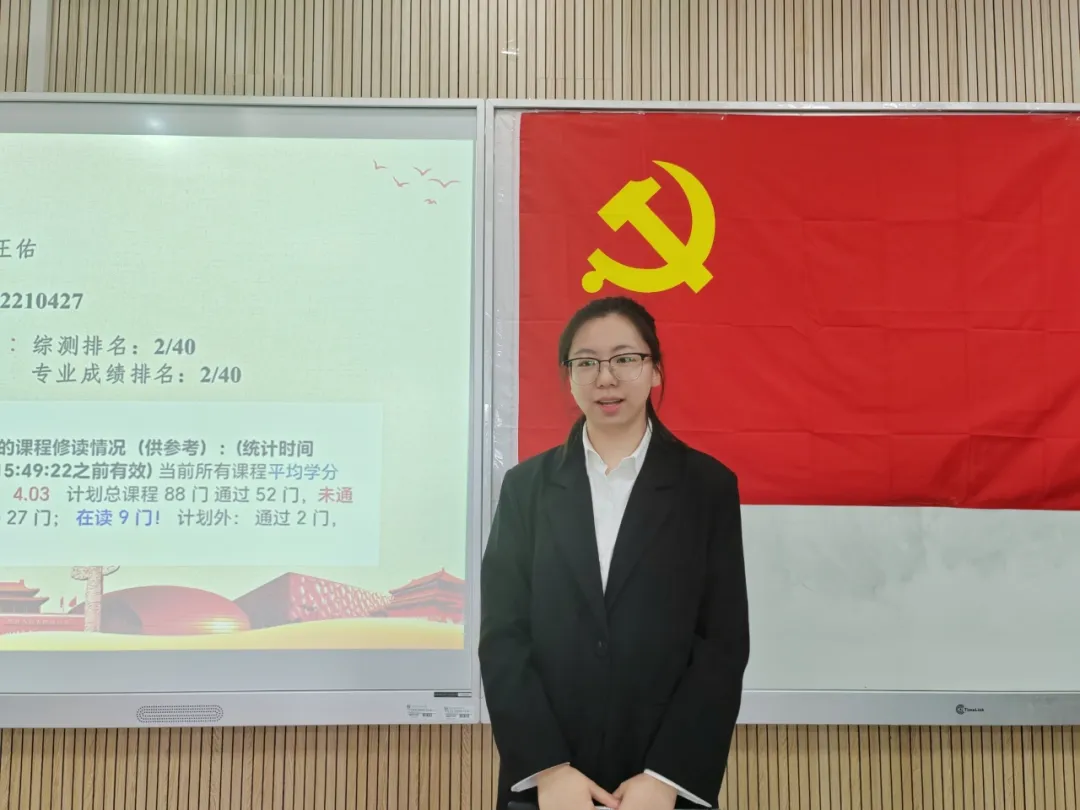 伴随着庄严的国际歌会议正式开始,主持人乔梓桐介绍大会流程。接着,8位拟发展对象依次上台从入党动机、对党的认识、在学习方面和志愿活动方面取得的成就、自身的不足和改进四个方面进行个人陈述。各拟发展对象字字含真情,参会人员感受到其积极向党组织靠拢的决心。他们表示要不忘初心,始终坚定维护党的领导,坚持守正创新、砥砺前行,不断朝着自己的目标奋斗。