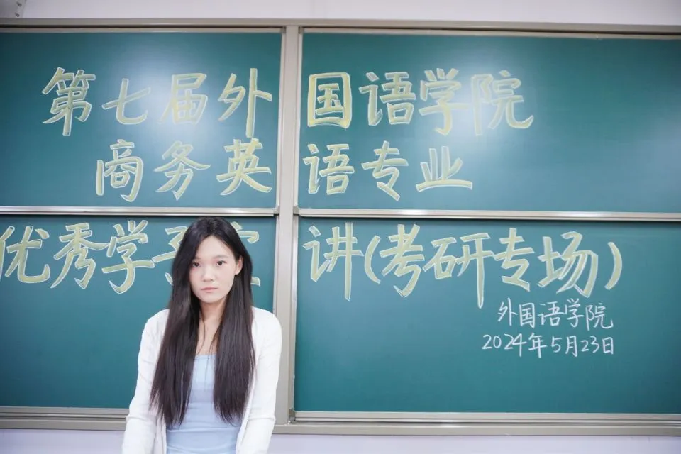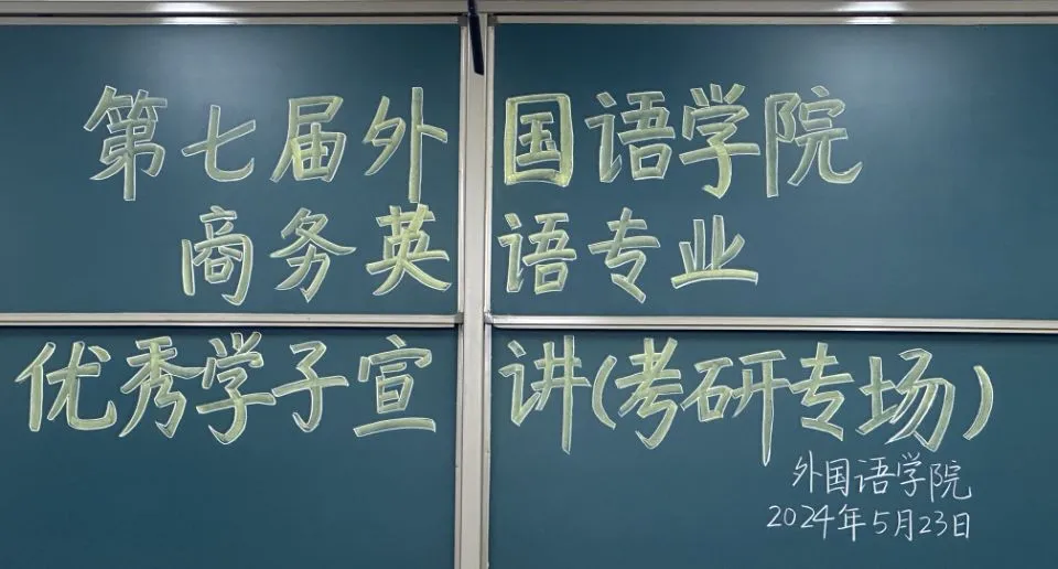 2024年5月23日,第七届外国语学院商务英语专业优秀学子宣讲会(考研专场)于敏行楼217教室顺利开展。此次宣讲会邀请2020级蔡菲尔、衡海燕两位考研成功上岸的优秀学子为同学们解答疑惑、传授考研经验。