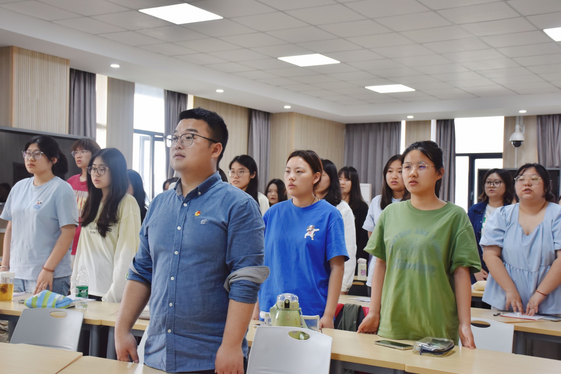 活动在庄严的国歌声中拉开帷幕,全体肃立,共唱国歌。
