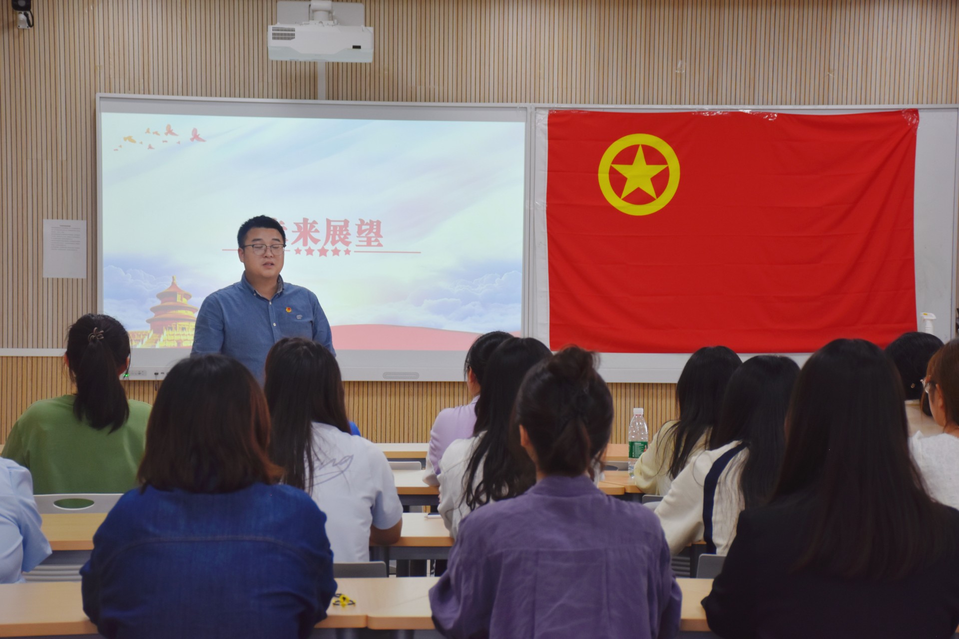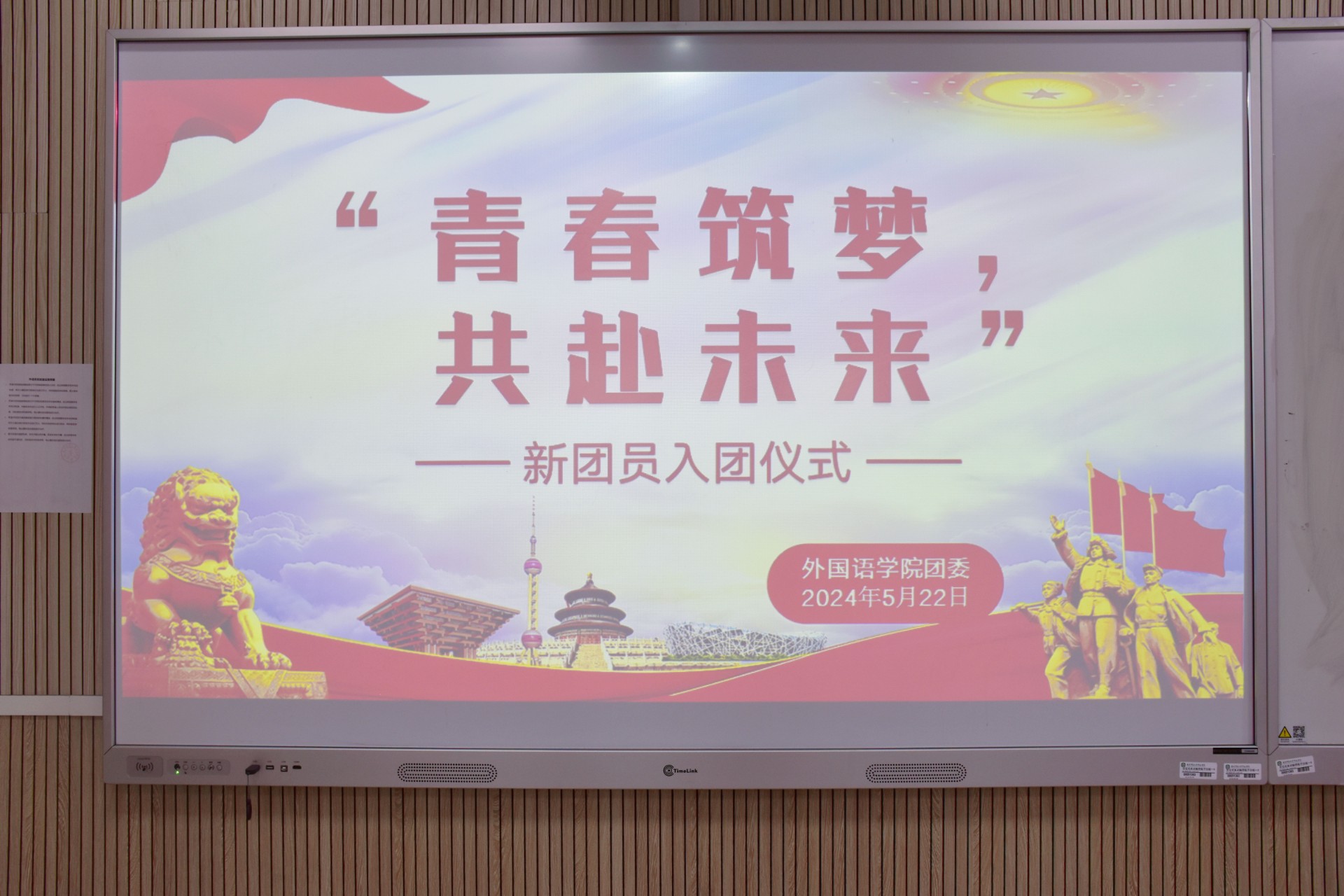 为深入学习贯彻落实党的二十大精神,进一步继承和发扬共青团优良传统,增强团组织的凝聚力,提升团员的荣誉感和使命感,2024年5月22日下午,外国语学院于崇文楼449教室开展“青春筑梦,共赴未来”主题教育暨新团员入团仪式。外国语学院辅导员王文山以及17位新发展团员参加本次活动,入团仪式由团委组织部负责人陈智威主持。