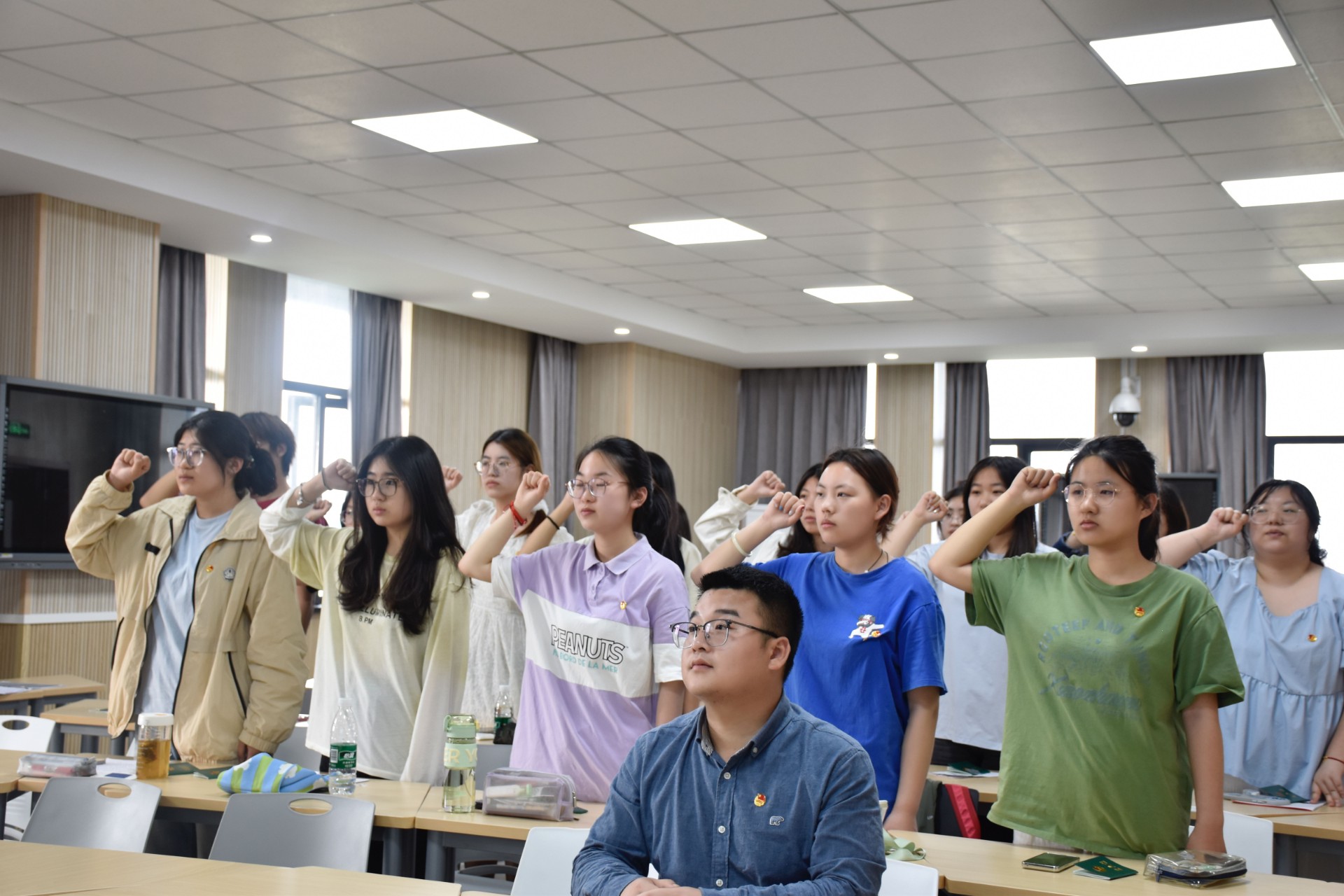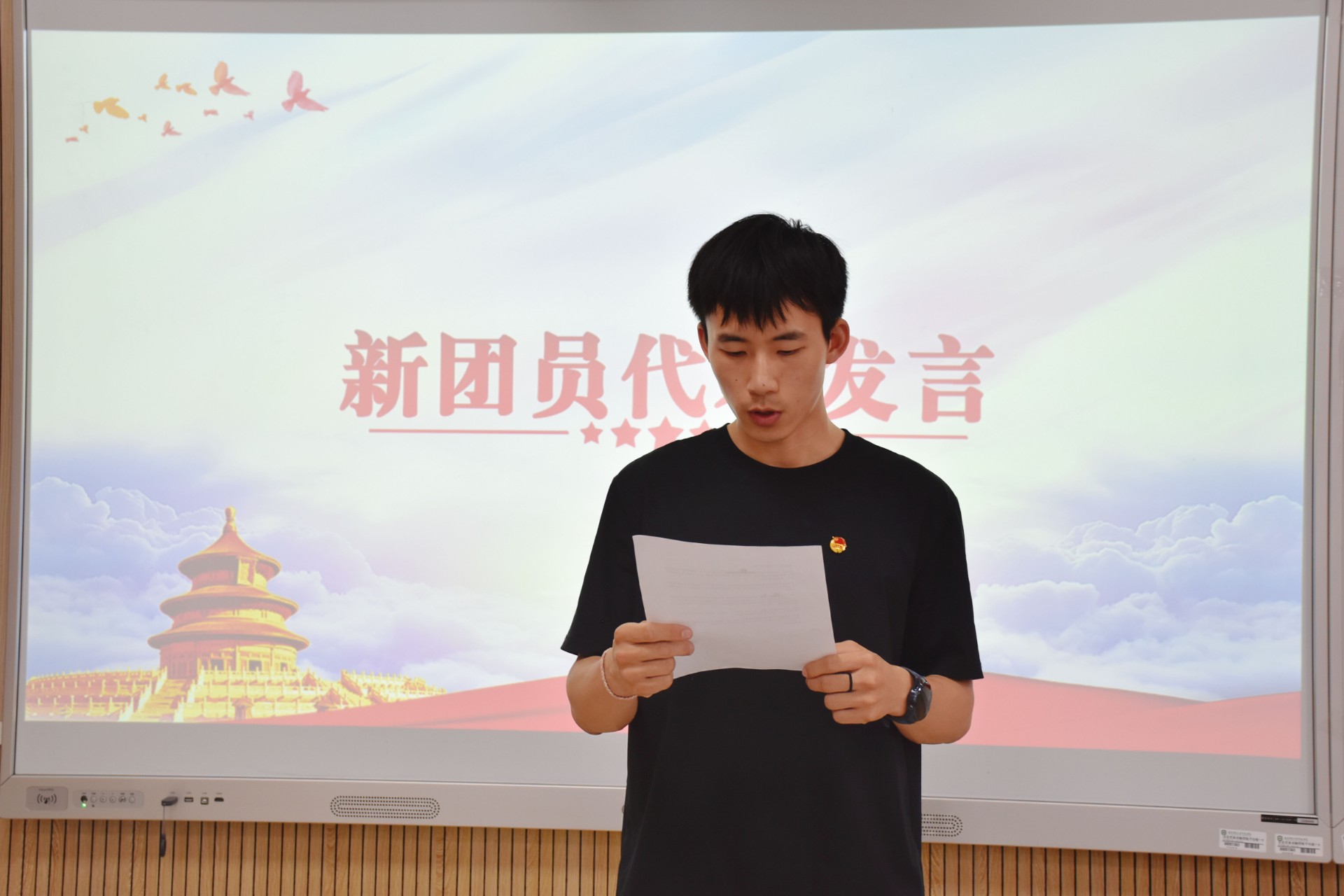 主持人宣读新发展团员名单,并向他们表达了祝贺。希望新团员们作为团组织的新鲜血液,肩负起新时代的使命和责任。