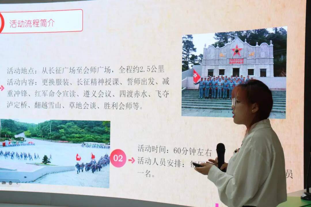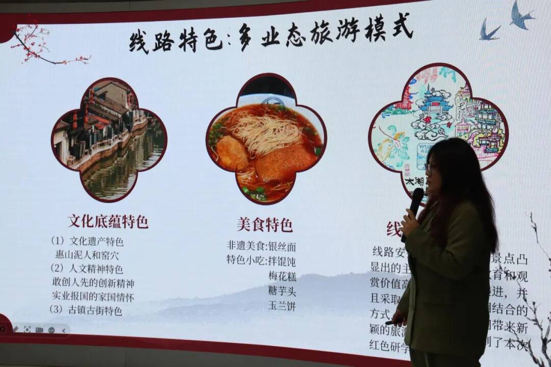 其中,薪火传人队和红细胞队以合理规范的路线规划和新颖独特的模拟导游讲解赢得了在场评委老师们和同学们的一致好评。薪火传人队以南京为研学目的地,通过参观学习侵华日军南京大屠杀遇难同胞纪念馆、雨花台风景名胜区等地,将旅行与教育深度融合;在探寻历史的同时,收获知识的果实,实现精神的升华,成功打造出优质的传承红色基因线的旅游产品。