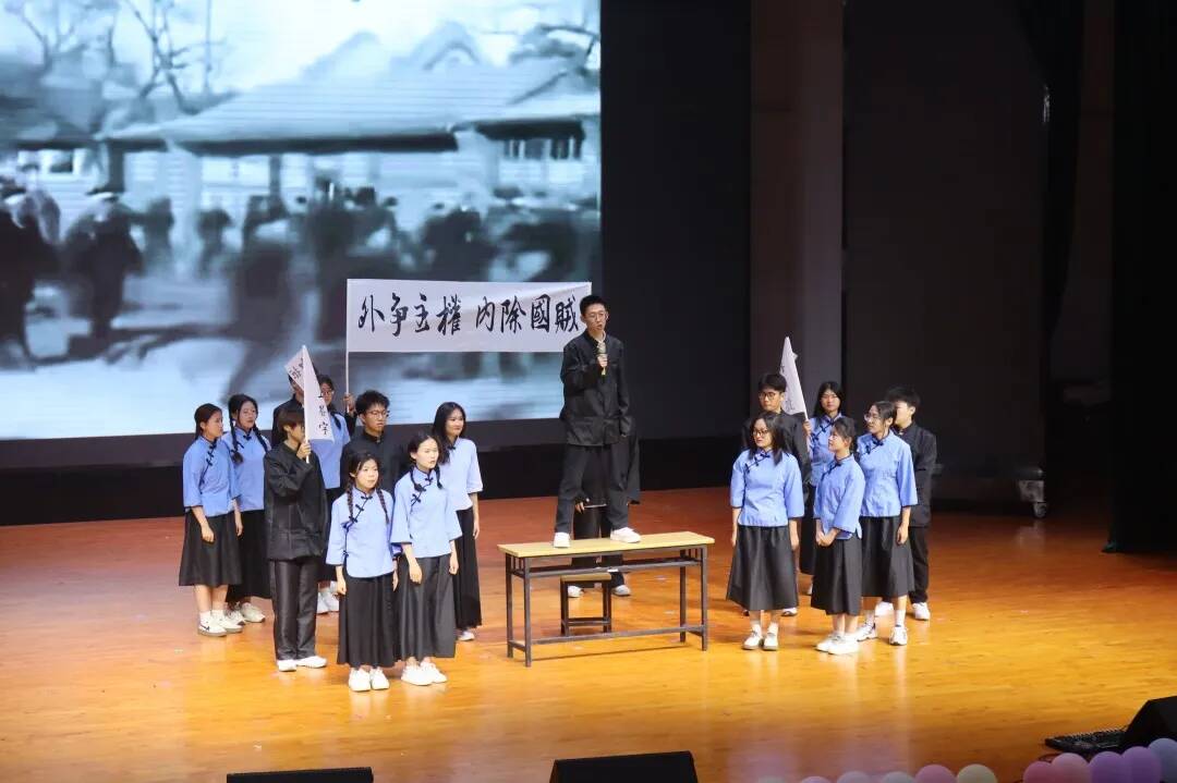 832306班带来的表演是《新青年崛起》。五四精神永不磨灭,同学们一位位上台,拿着话筒喊出振聋发聩的警示。同学们从不因为年轻而不闻窗外事,他们更有血性,从未坎坷而放弃。一首相亲相爱,同学们活力满满地展现着一片和谐的大好图景。