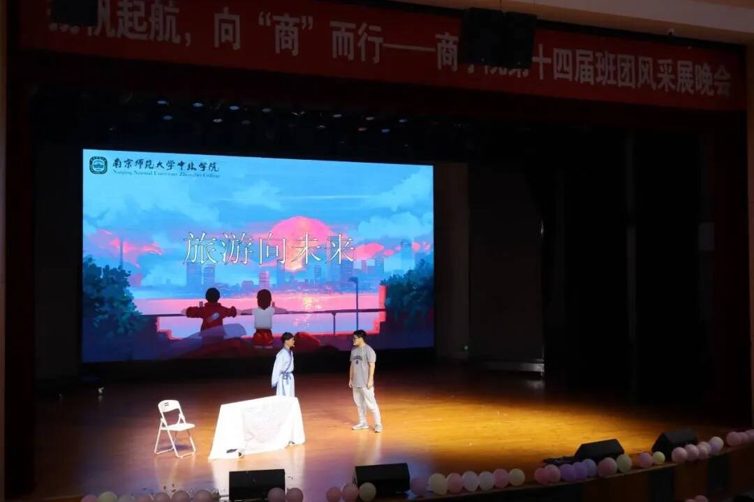 2024年5月29日18:00,商学院于起凤楼礼堂举办了以“扬帆起航,向‘商’而行”为主题的第十四届班级风采展。出席本次活动并担任评委的老师有商学院院长田文,党总支书记书记邹慧、团委书记顾丽超、教学办主任王珏、辅导员陈梦媛、郝思捷、芮锦绣、程之伟,到场的还有新生辅导员史文、张栋华老师,班主任徐榕、沈佳君、姜鲲、汪轩如、郦温超老师。
