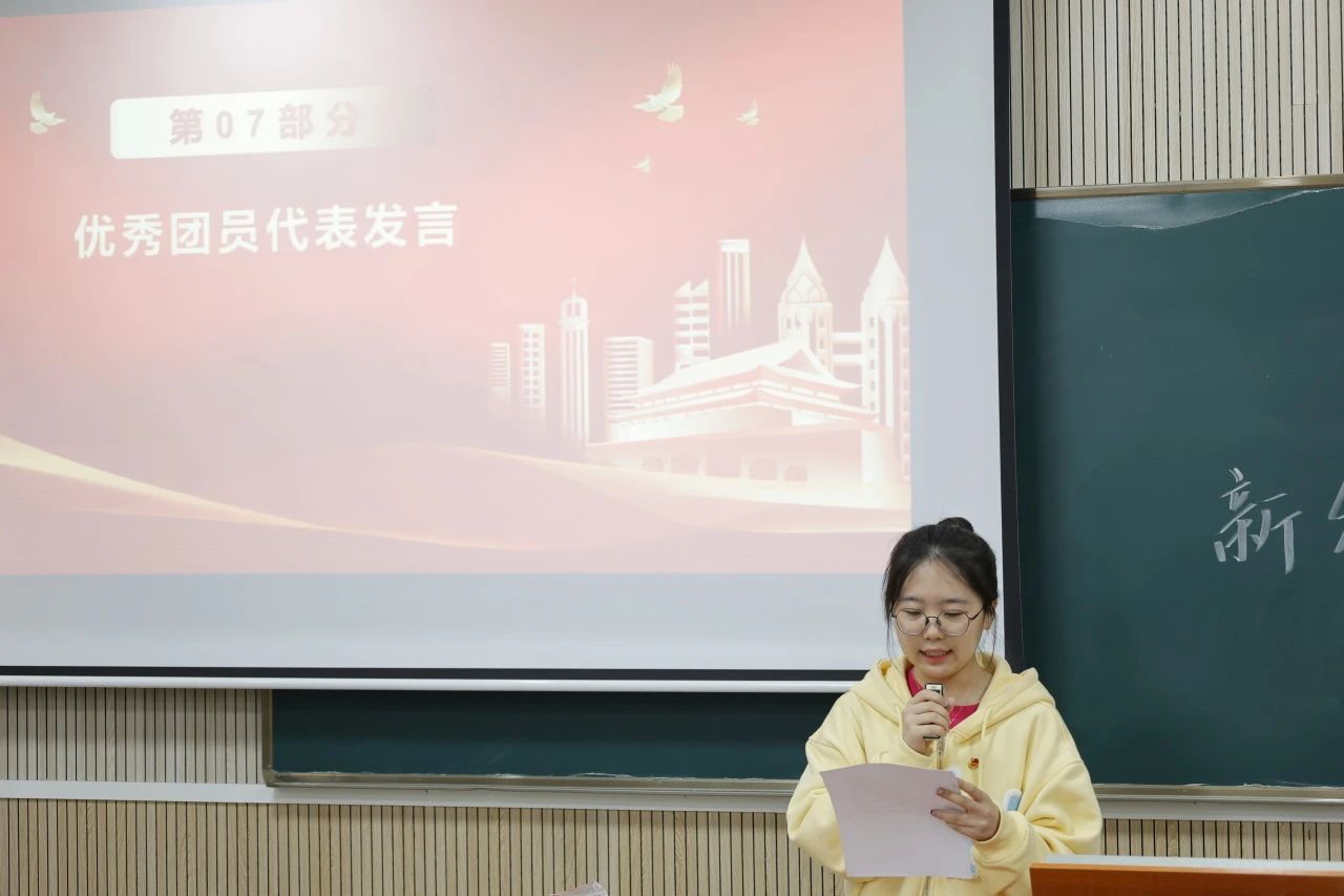贺敏章同学作为优秀团员代表发言。她勉励团员们将青春的小我融入到强国的大我中,立志成为有理想、敢担当、能吃苦、肯奋斗的新时代青年。