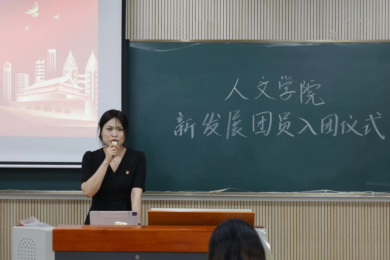 为深入学习贯彻习近平新时代中国特色社会主义思想,增强团员的先进性、荣誉感和使命感,2024年6月5日下午4:30,人文学院在崇文楼237教室举行了新发展团员入团仪式。