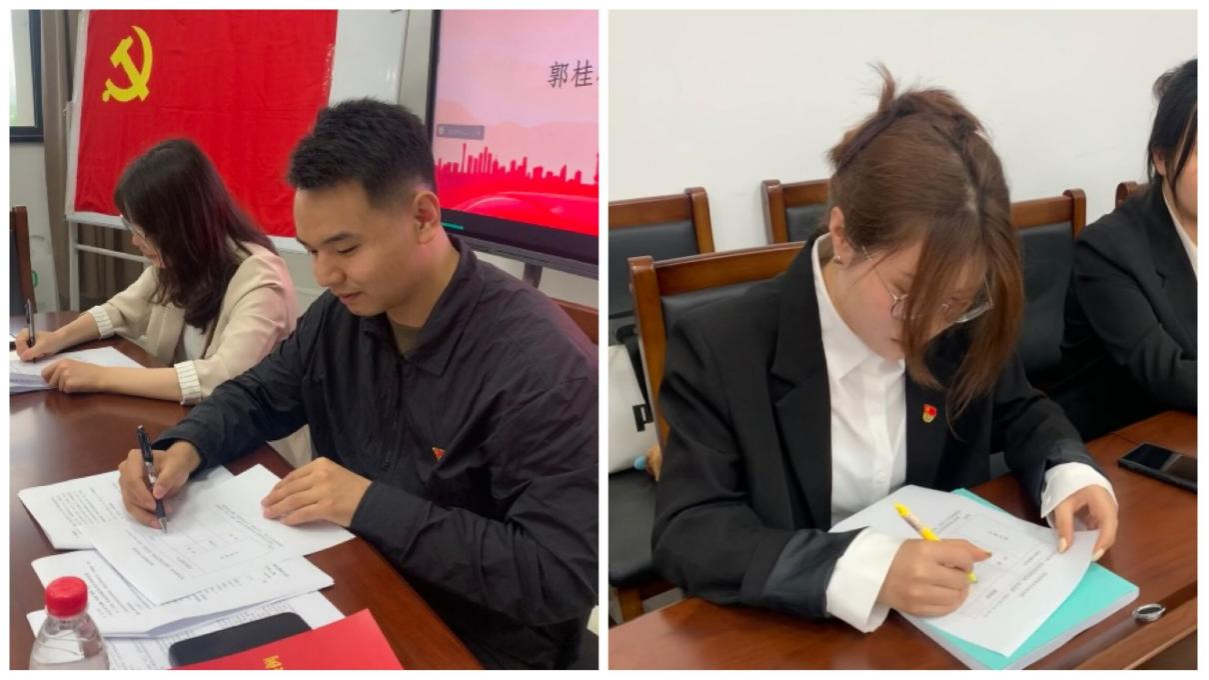 ▲戴璐、孙舒蕊等五位申请人依次向党组织表决心。