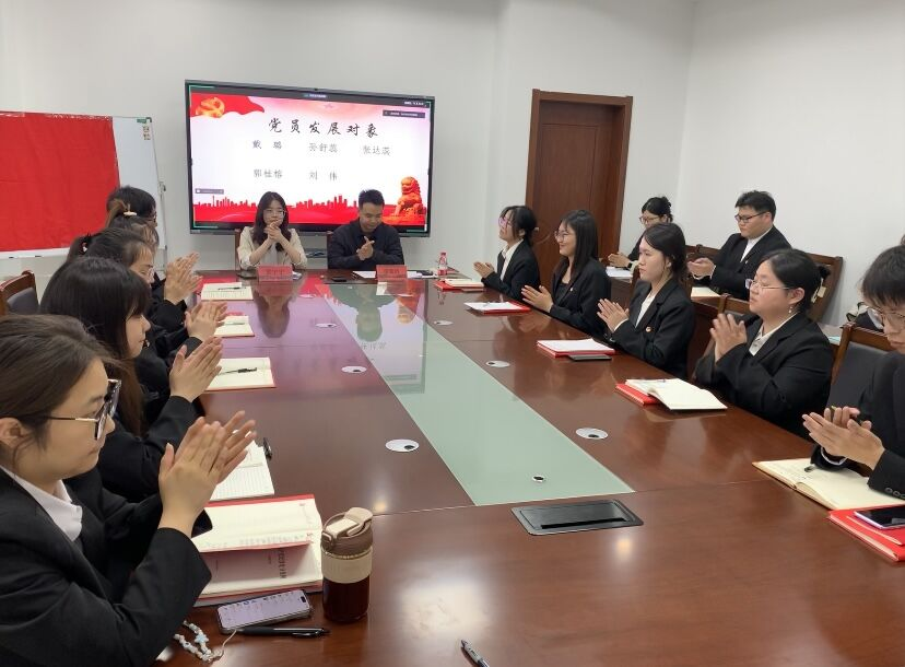 2024年5月30日下午,法政学院学生第一党支部于崇文楼301室召开新党员发展大会,大会讨论接收戴璐、孙舒蕊等五位发展对象为预备党员事宜,会议由支部书记席胤清老师主持。