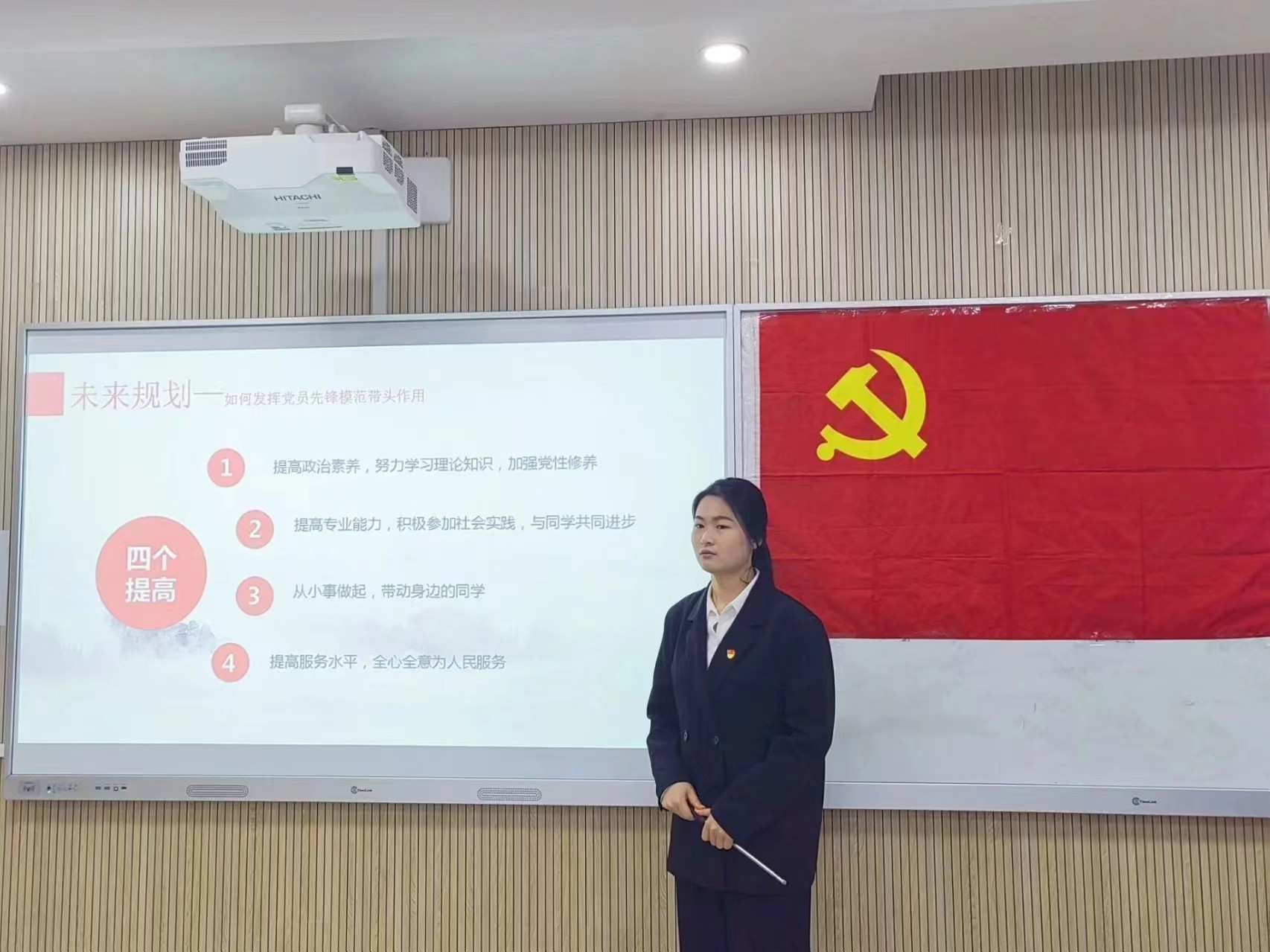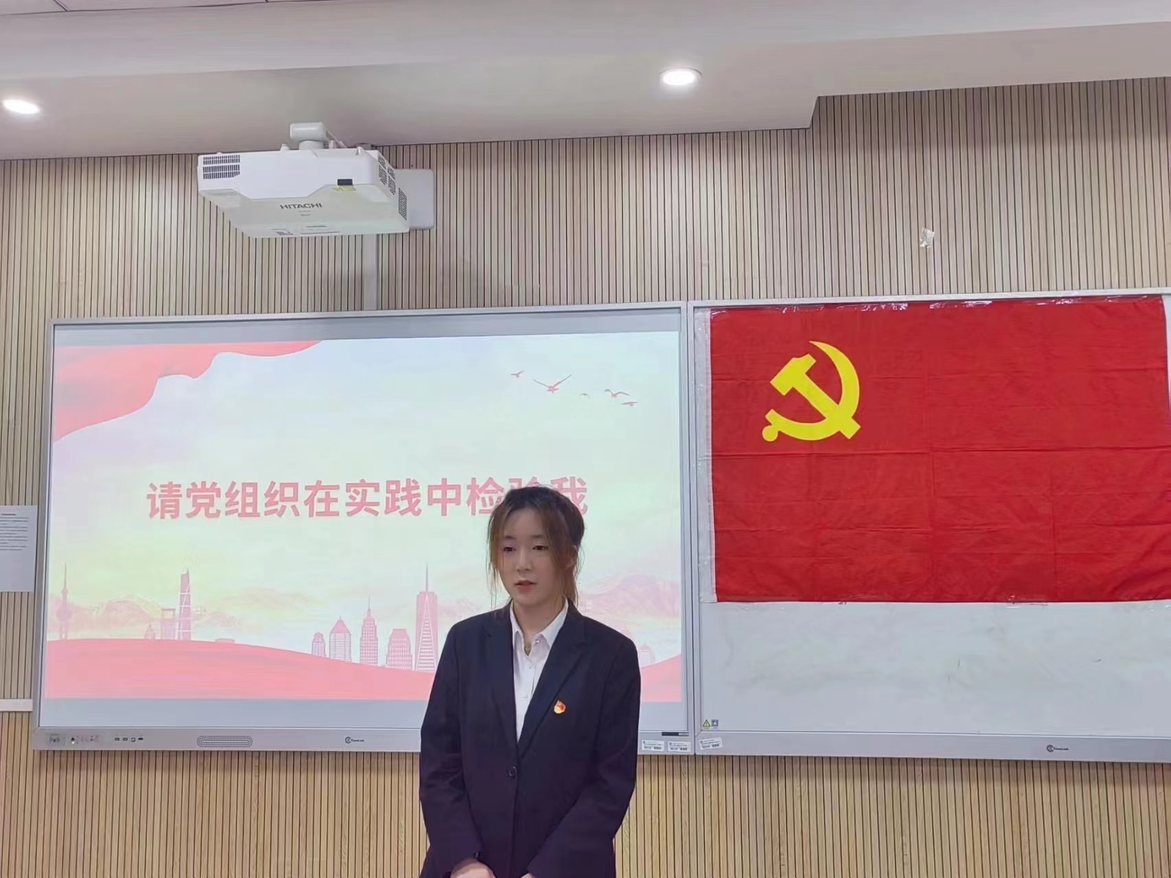 伴随着庄严的《国际歌》,会议正式开始。会议第一项,预备党员个人陈述。施红利、胡倩等14位预备党员依次上台从个人基本情况、入党动机、专业学习、党的理论学习、社会工作、志愿服务、实践活动和存在的不足以及今后努力方向等方面进行五分钟的个人陈述。各位预备党员思维清晰,逻辑严谨,可以从中感受到他们积极向党组织靠拢的决心和坚定不移跟党走的信念。