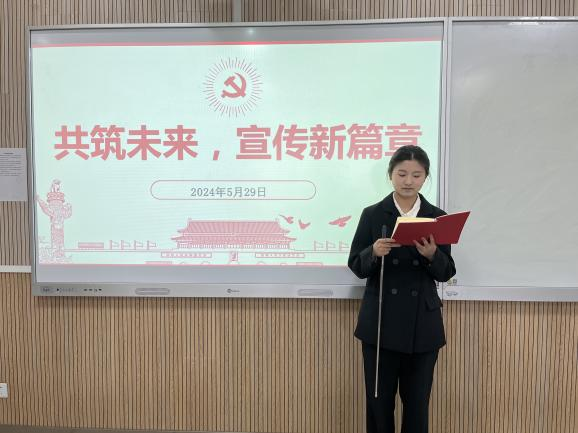 2024年5月29日下午4:30,外国语学院学生党建工作部于崇文楼449教室举行2024年换届竞选大会。外国语学院学生第一党支部书记朱雨炜老师、副书记赵峥嵘老师出席本次会议。会议旨在选举新一届党工部各部门负责人。