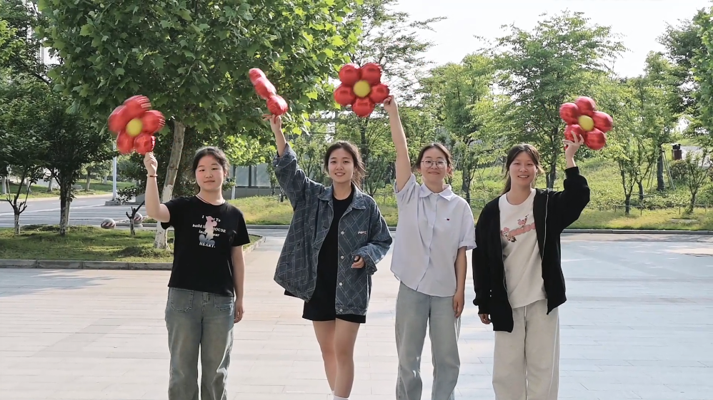 《送你一朵小红花》是由我院心理辅导员杨艳老师指导完成的手语操原创作品,由来自信息工程学院的15名同学共同演绎。该作品主要讲述大学生女主角在追逐理想的过程中遭遇挫折,心灰意冷,在朋友的陪伴和鼓励下重拾信心,振作起来,最终和伙伴们一起实现理想的故事。参赛歌曲选自同名电影《送你一朵小红花》的主题曲,主要传达一种积极阳光乐观的生活态度,以现实主义精神和浪漫主义情怀关注生活,用光明驱散黑暗,让人们看到希望和梦想就在前方。