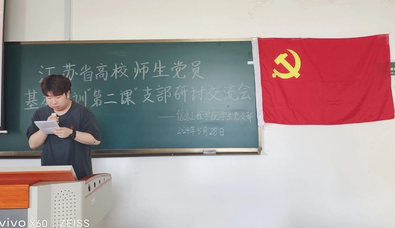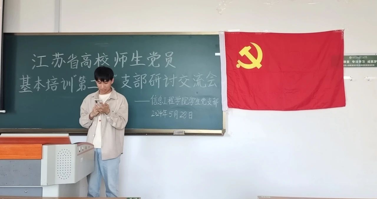 为增强学生党员对科技创新、人才强国的认识,同时也为了让学生党员进一步了解高校科技建设。2024年5月28日16:00,信息工程学院学生党支部于一教201开展江苏省高校师生党员基本培训“第二课”支部研讨交流会,全体在校学生党员线下参加,不在校党员线上参加活动。