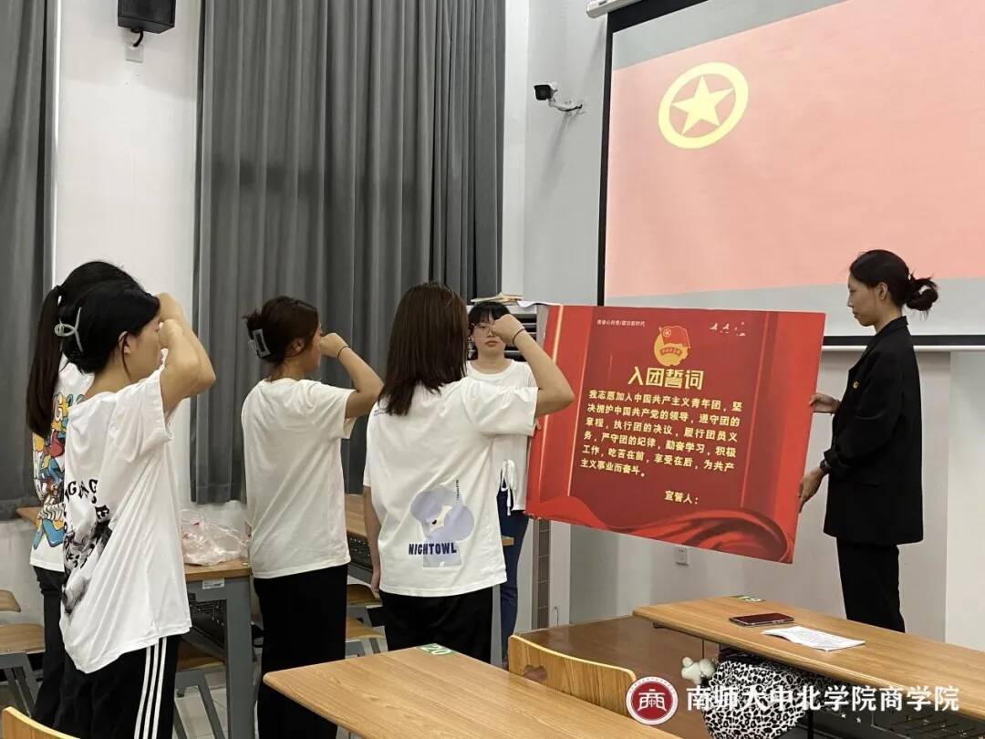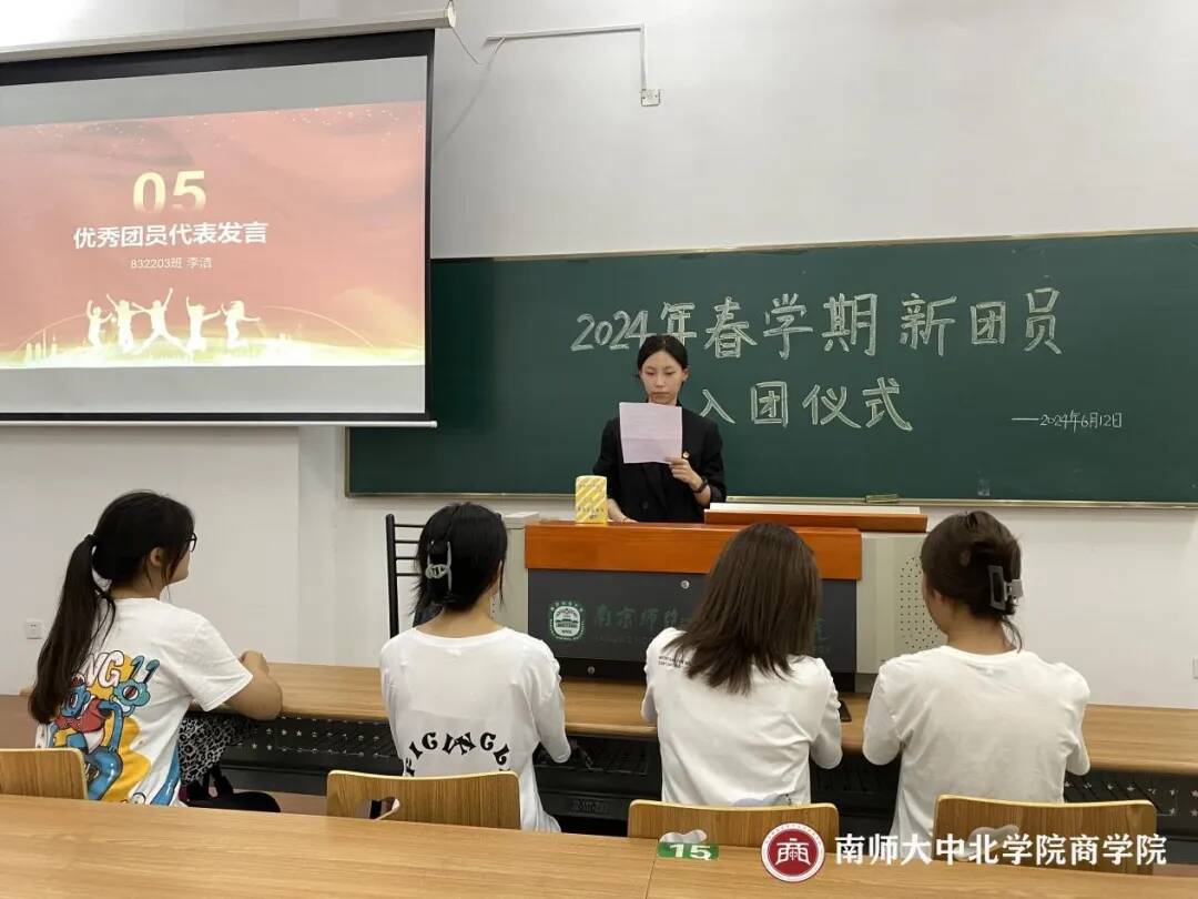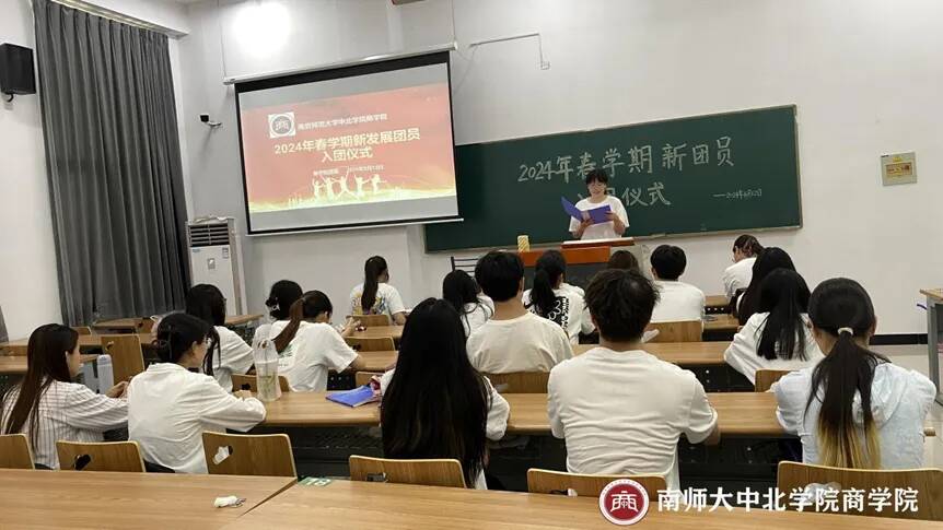 为深入学习贯彻落实党的二十大精神,进一步继承和发扬中国共青团的优良传统,增强团组织的凝聚力和向心力,提升团员的荣誉感、责任感和使命感,2024年6月12日下午4点,商学院于二教117教室举行2024年春学期新发展团员入团仪式。商学院团委书记顾丽超老师以及24位新发展团员参加本次活动,入团仪式由团委组织部负责人惠奕悦主持。