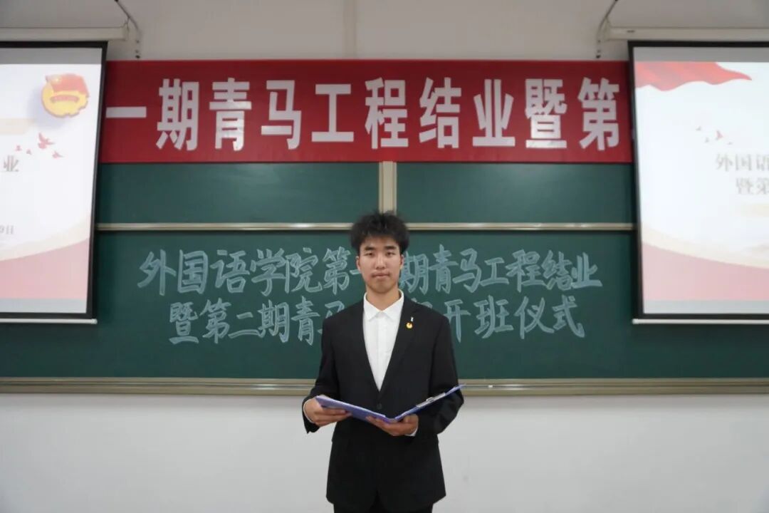 2024年5月29日下午,外国语学院于敏行楼119教室开展“青马工程”骨干示范培训班结业式暨第二期“青马工程”骨干示范培训班开班仪式。出席本次活动的有外国语学院党总支书记贾成俊、团委书记刘亚翠,第一、第二期“青马工程”骨干示范培训班全体学员。活动由团委组织部负责人陈智威主持。