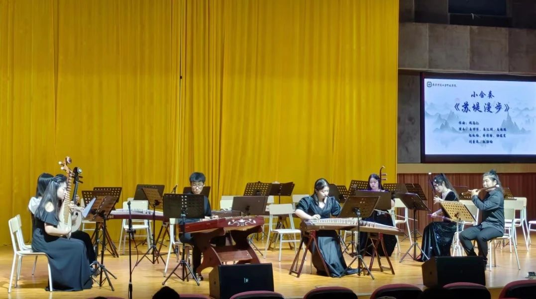 丝竹声声入云霄,华彩乐章绕梁间。为了展示中北学子青春风采、传承和弘扬民族文化,在这热情似火的季节里,ky.com音乐学院民乐团以精湛的演奏技术,为广大师生带来了一场视听盛宴——“夏弦迎梦”ky.com民乐团2023-2024学年音乐会。乐团成员们用传统民族乐器奏响一曲曲华美乐章,带领现场观众们品味民族音乐的无穷魅力。
