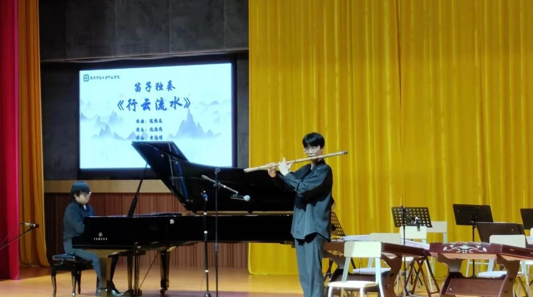 笛子独奏《行云流水》登场,笛子音色悠扬,仿佛将观众们带到了一个宽广的自然场景中,感受到了风的轻拂,云的飘动,以及水流经过时的细腻声音。乐曲旋律如同流水般起伏不定。让我们仿佛看到了生活中的喜怒哀乐,经历了从平静到高潮,再到平静的过程。小合奏《苏堤漫步》则以一种轻松愉快的方式,展现了人们在苏堤上漫步的惬意与闲适。乐曲充满了生活的气息和人情味,让在场的观众们仿佛置身于江南的水乡之中,感受到了江南地区的温暖和清雅。