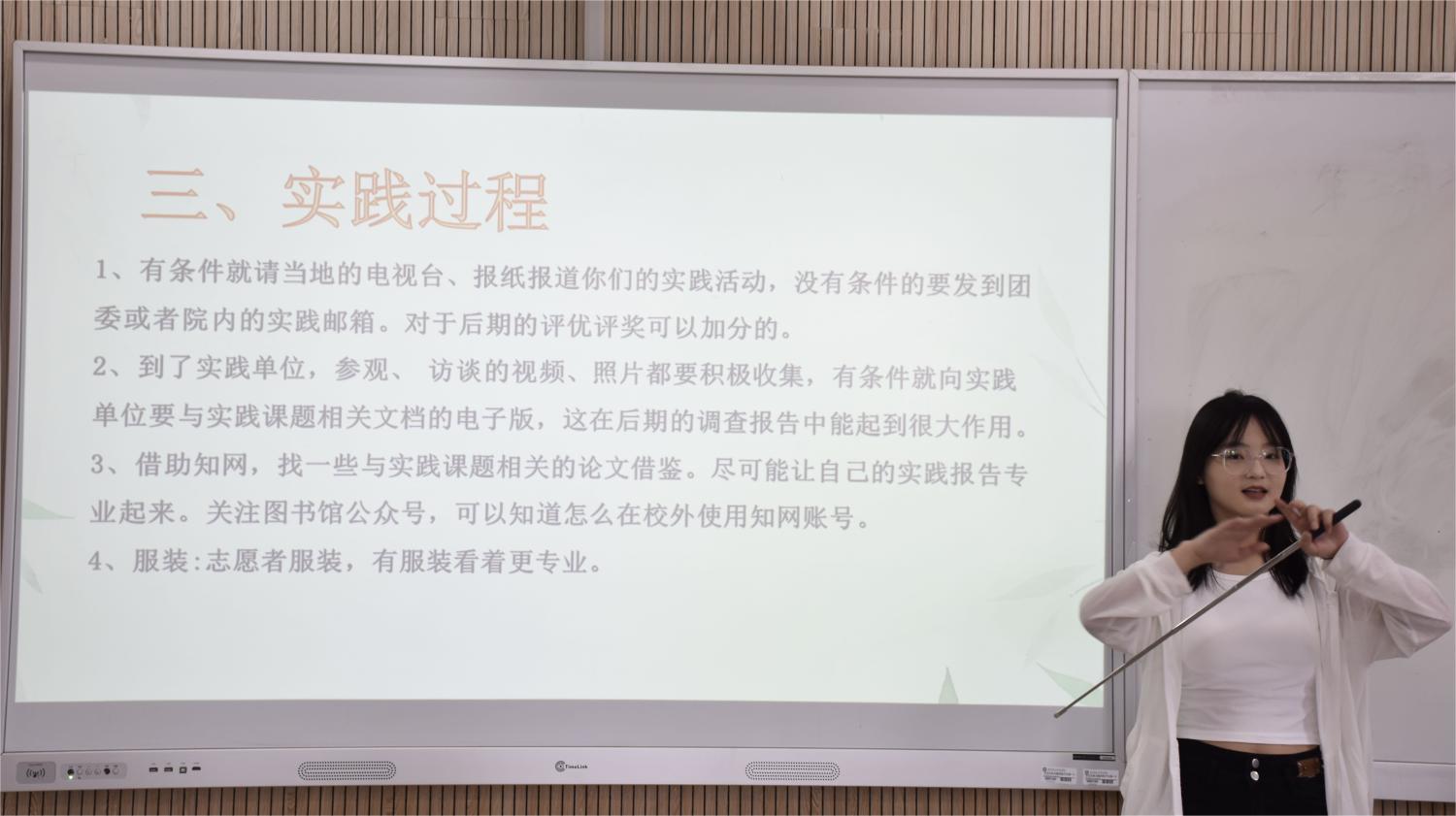 随后,21级日语专业施红利同学作为2023年“三下乡”社会实践获奖团队项目负责人,分享了她在去年的活动中的亲身经历,为同学们的社会实践指引了方向。