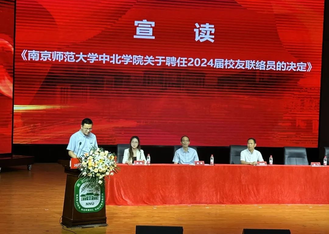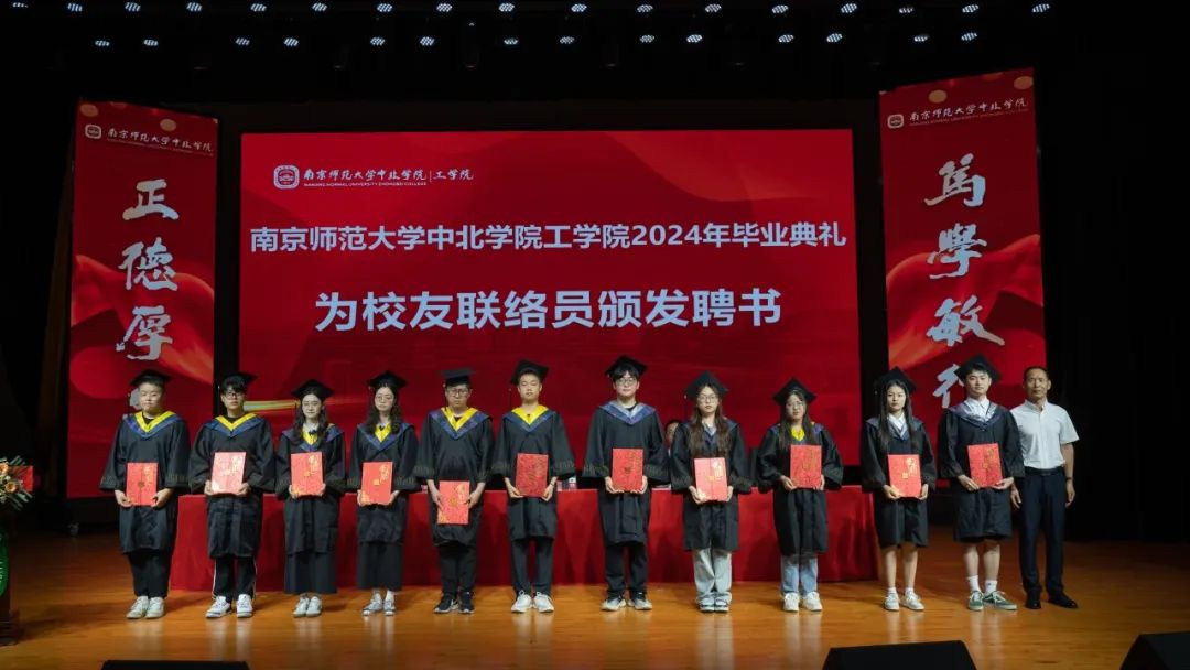 工学院副院长楼飞老师宣读《ky.com关于聘任2024届校友联络员的决定》,ky.com副院长徐永辉老师为校友联络员代表颁发聘书。