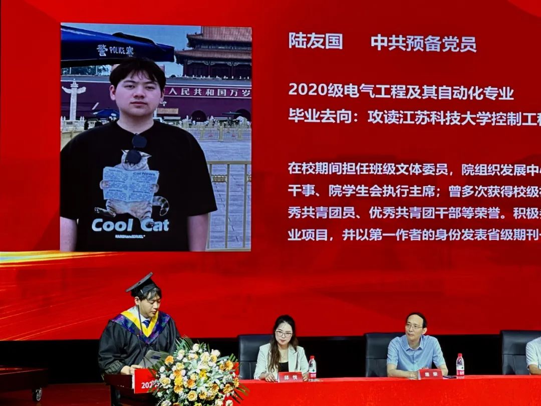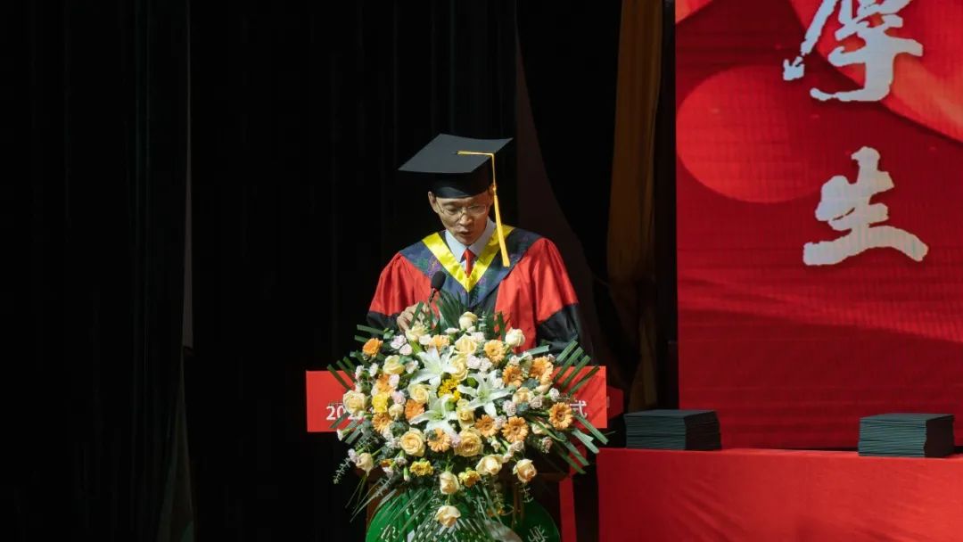 毕业生代表陆友国同学发表感人至深的毕业感言,回忆了在校期间的点滴,表达了对母校的依恋和对未来的期许。教师代表张杏丹老师深情寄语毕业生,希望同学们保持乐观向上、自信自强的阳光心态。