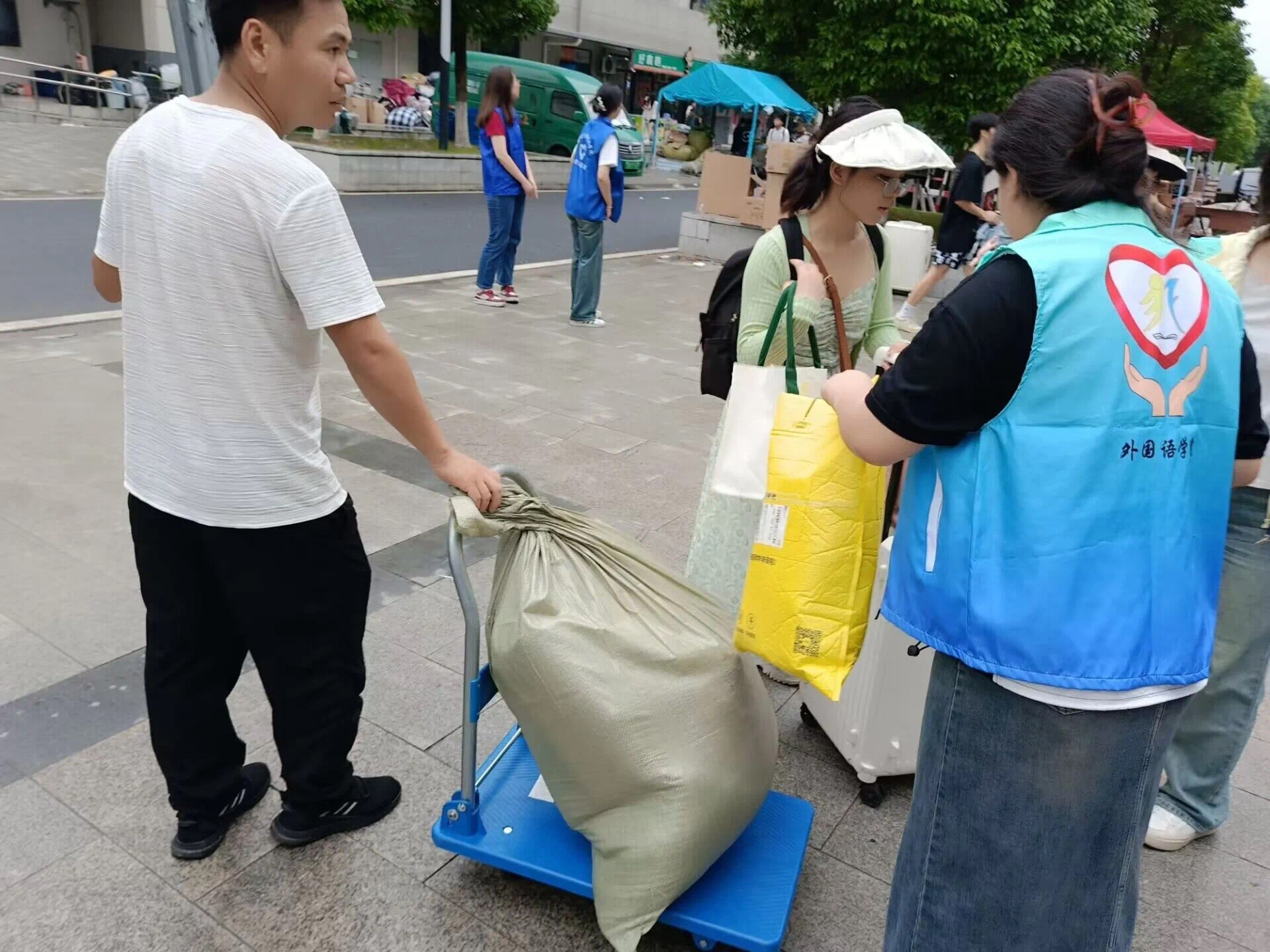 每当毕业季来临,学校里总是弥漫着一种离别的氛围。毕业生们正准备挥别熟悉的校园,迈向人生的新篇章。此时,有一群人,他们身穿外院志愿者标识的外套,面带微笑,正忙碌在每栋宿舍楼之间,为毕业生们提供行李搬运服务,送别学长学姐们奔赴美好前程。他们是可爱的志愿者们,他们的存在,让毕业离别多了份温暖,让告别更加轻松。