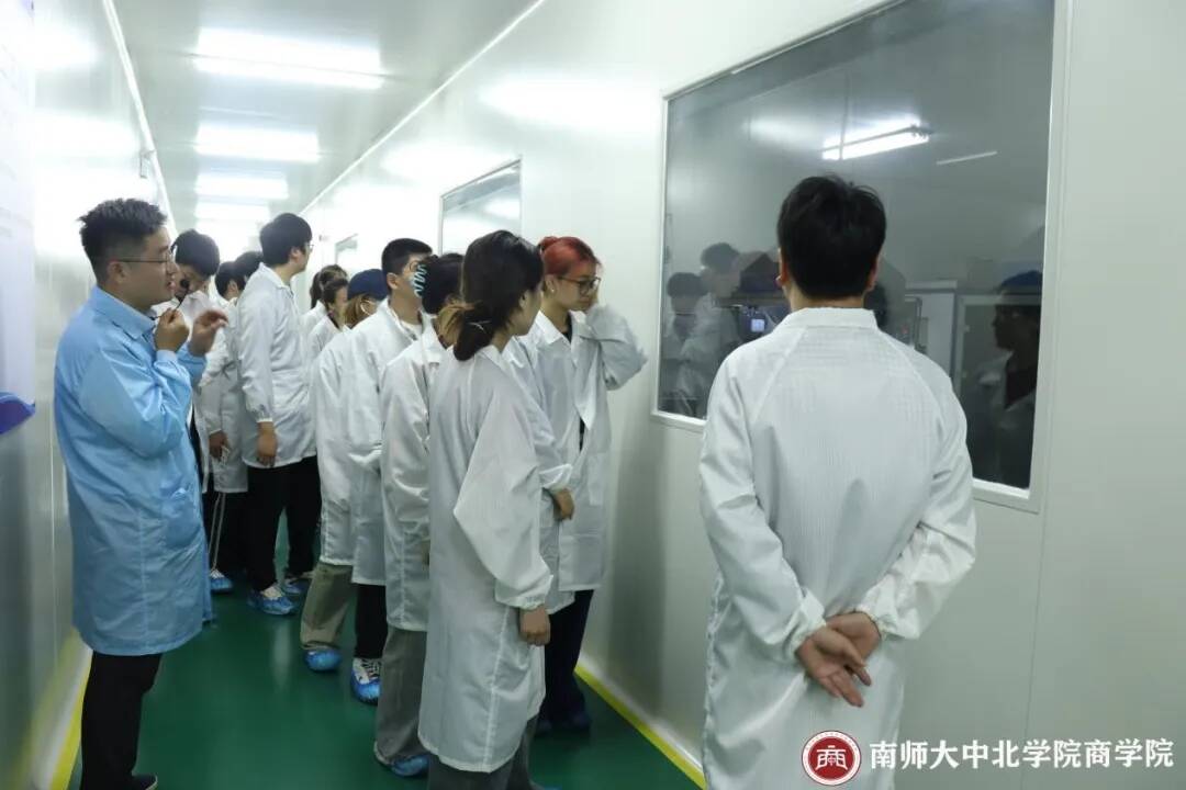 商学院师生们统一前往汇鼎集团,到达企业后,同学们换上了统一的工作服和鞋套,怀着积极求学的态度开始了此次参观之旅。