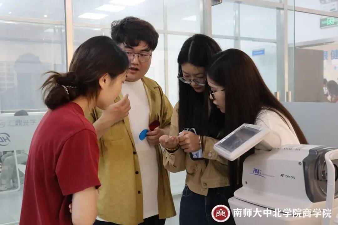 随后,同学们来到了集展示与体验于一体的眼镜管理服务中心,进行多种眼镜产品的参观和体验,感受到了汇鼎眼视光集团为消费者带来的健康视觉服务。15分钟的自由活动,增强了活动的趣味性与体验感,也让同学们更加关注自己的视力健康。