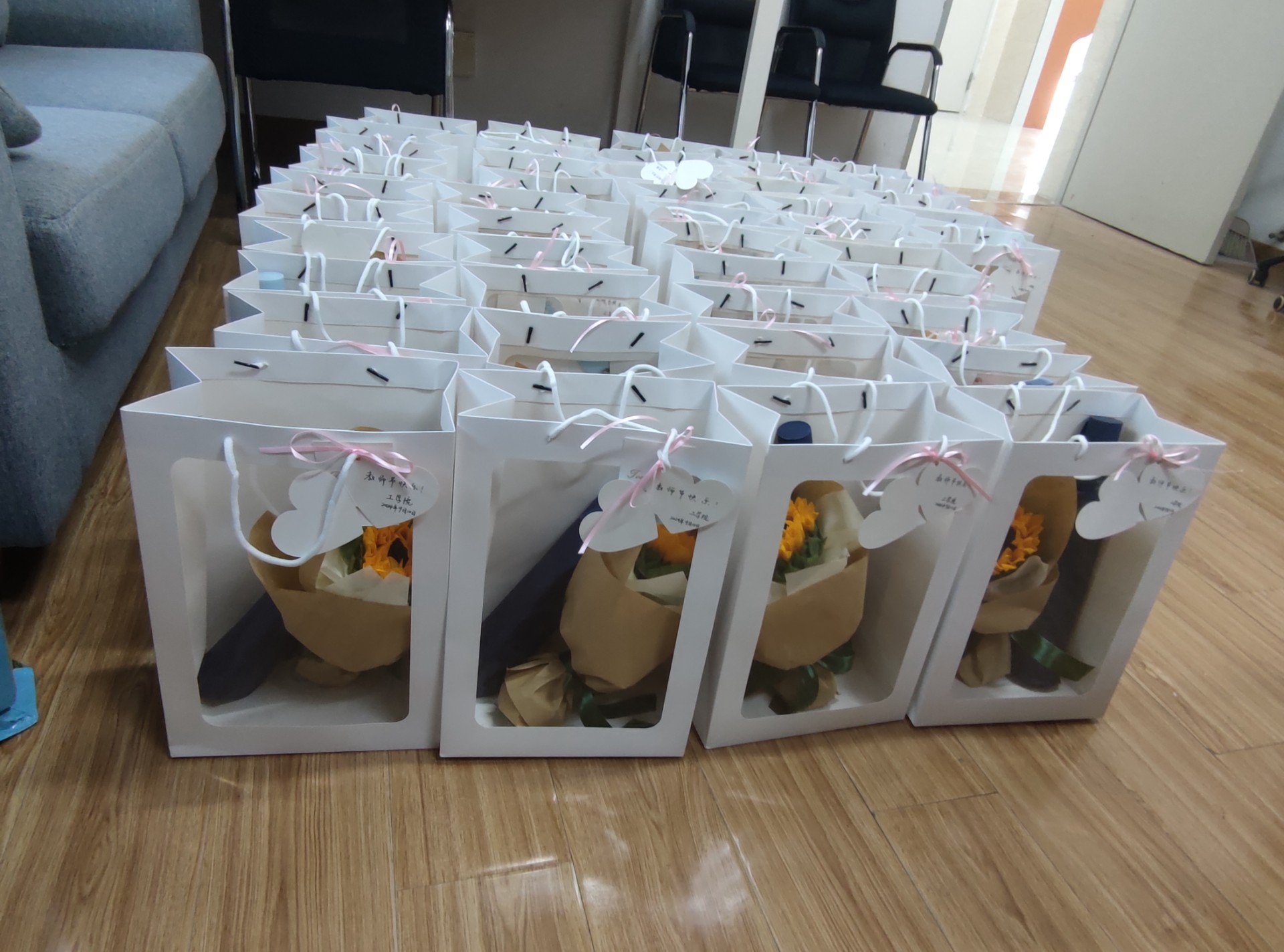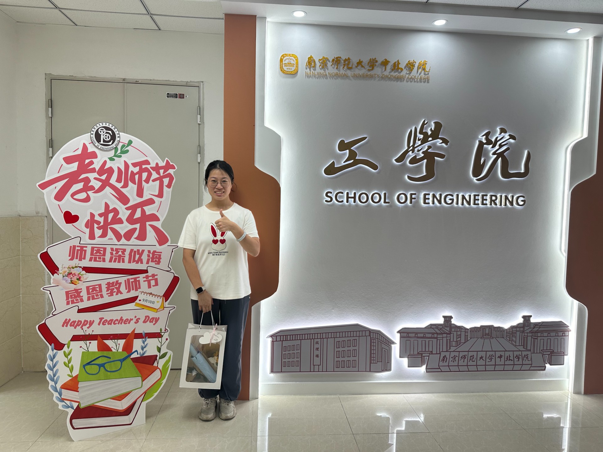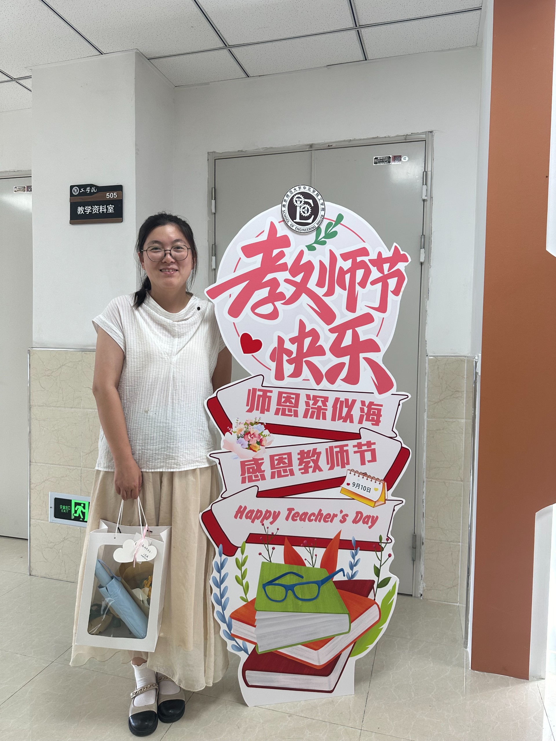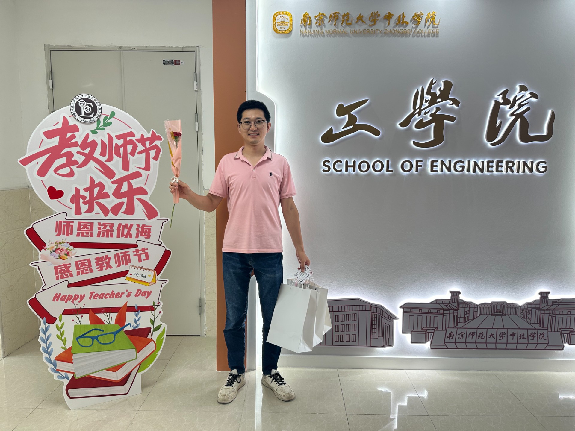 致理楼里洋溢着浓厚的节日氛围,工学院的老师们手捧鲜花,感动之情溢于言表。每一朵花都表示对老师的感谢与尊重,更是对老师辛勤付出的肯定与颂扬。