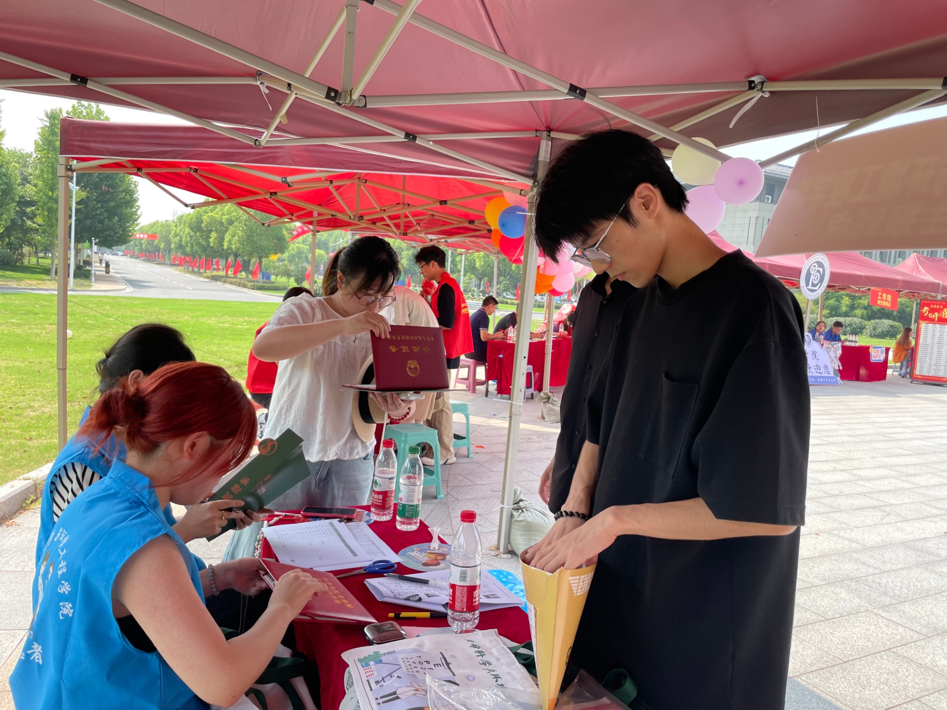 为给新生们营造一个温馨、便捷的入学环境,学院提前进行了人性化的迎新布置。色彩斑斓的气球营造出一片热烈而温馨的景象,两顶帐篷、四张桌子划分出报到处、咨询台、休息区,每一处都配备了热情的学生志愿者,确保新生能够迅速完成报到流程,感受到家的温暖。学院也贴心准备了新生礼物,小小手提袋装载了满满的关怀与祝福。
