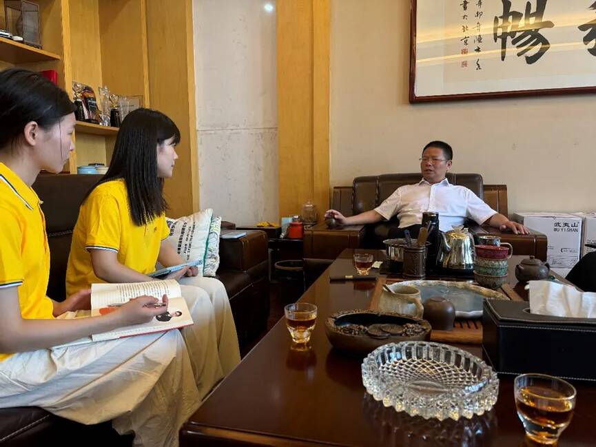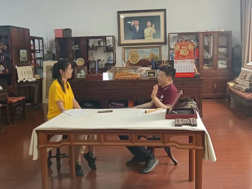 胡可妹同志在万新光学采访汤龙保董事长