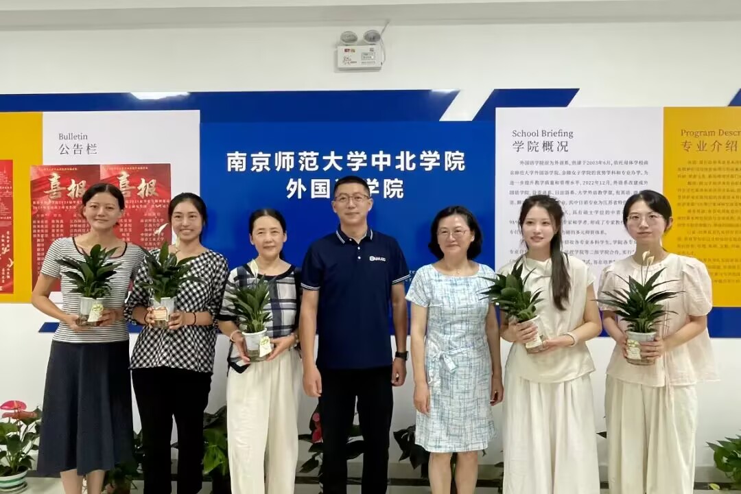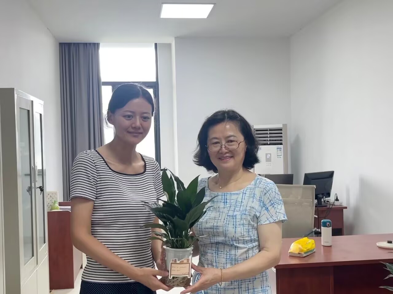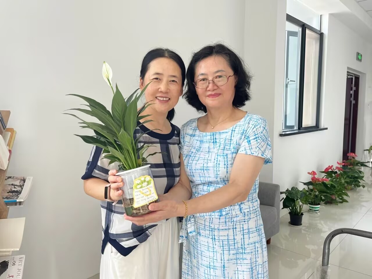 外国语学院王文琴院长、贾成俊书记带领着学生代表手捧精致的盆栽慰问全体教职员工,体现了学院对教师的关心、爱护,也体现了我院学子对老师们的尊敬、爱戴以及真挚的祝福。在此前夕,外院学子准备了各式各样的便利贴,满心欢喜、精心准备着对老师们的祝福;并将盆栽进行分装,擦洗瓶身、细心浇灌,宛如他们的恩师给予的爱的浇灌。