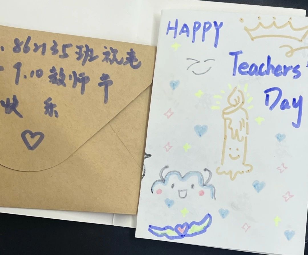 课间,各班班长代表班级同学将精心准备的贺卡送到老师手中,并送上自己最真挚的祝福。同学们用手中的画笔,在贺卡上写下最真挚的文字,这些贺卡满载着学生们对老师的感激与祝福,每一份贺卡都是独一无二的。