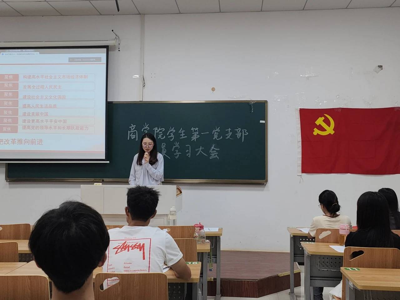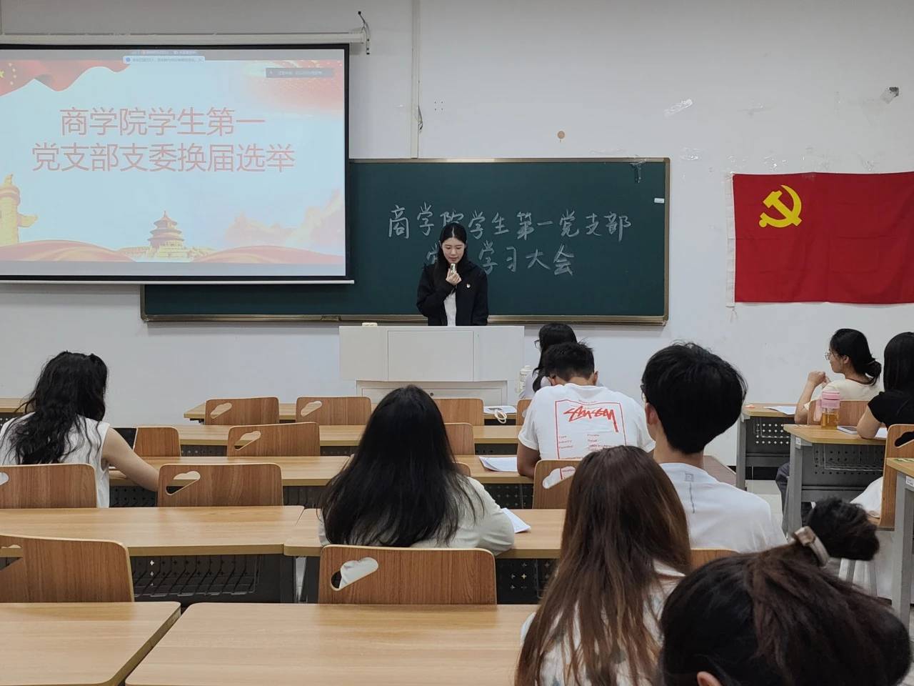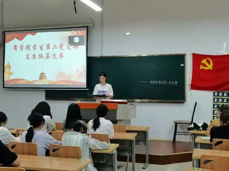2024年9月18日下午16:00,商学院学生第一党支部和第二党支部分别在一教109和一教115召开九月专题理论学习大会暨支委改选大会。本次会议由程家梅、鲁一凡主持,支部书记芮锦绣、郝思捷老师及全体学生党员参会。