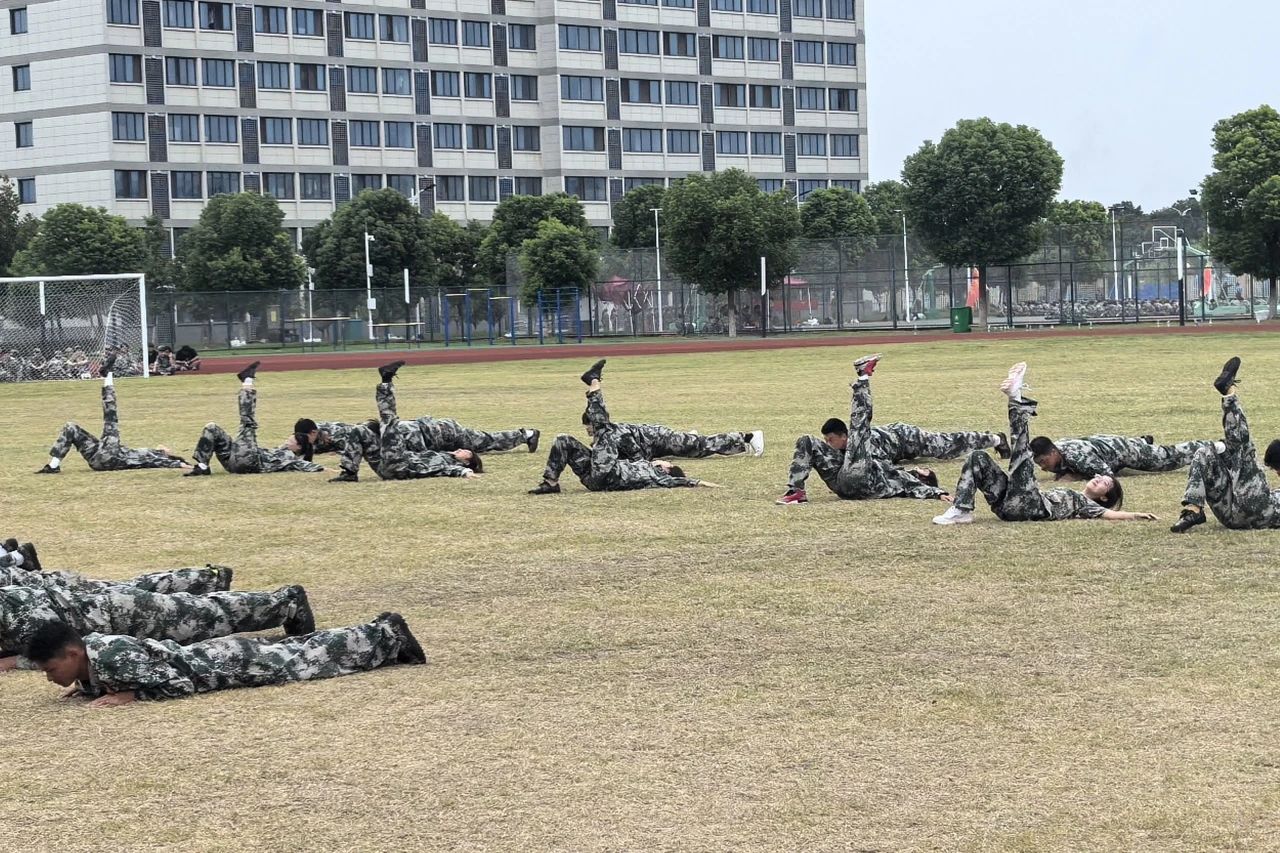 在这片绿茵茵的操场上,同学们身着统一的迷彩服,仿佛一片绿色的海洋。阳光下,他们站得笔直,每一个动作都力求精准到位。教官们耐心指导,严格要求,同学们则全神贯注,认真对待。