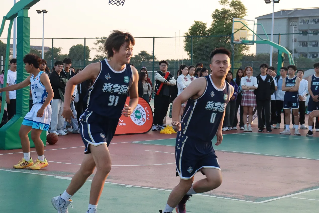 比赛前,各参赛选手早早地来到了篮球场,开始赛前热身运动。经过简短的开幕式后,比赛在裁判清脆的哨声后拉起序幕,高高抛起的篮球瞬间成为全场焦点。比赛正式开始!球员们你攻我守,巧妙的传球、灵活的走位、完美的配合……每一个瞬间都让人热血沸腾。最终,商学院以51-38的比分获胜。