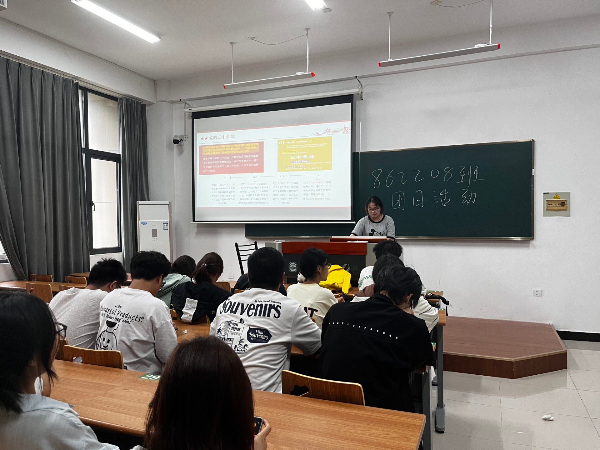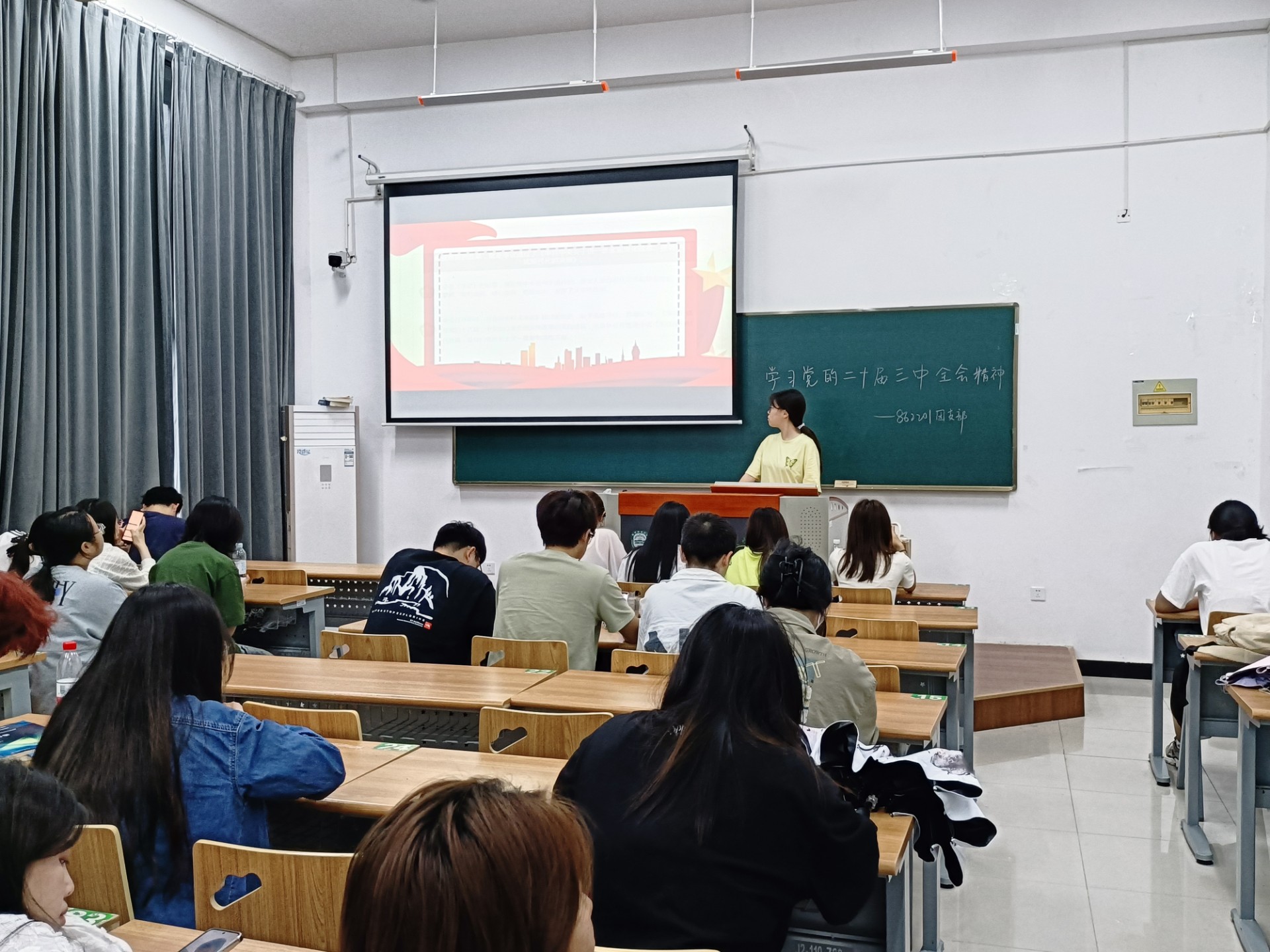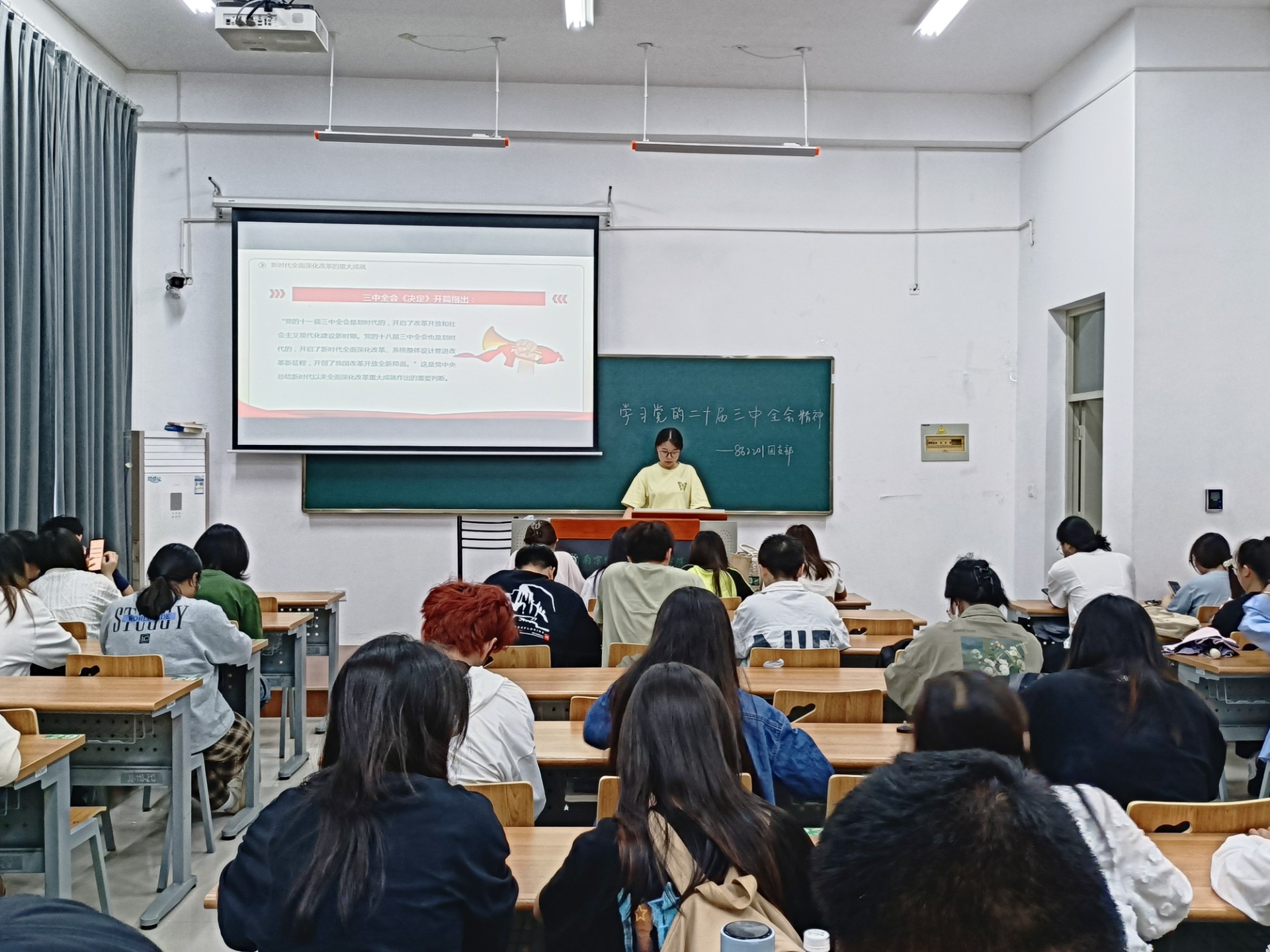 活动期间各团支书以PPT和其他多媒体方式,全方位向同学展示了党的二十届三中全会精神。它不仅为国家的未来发展指明了方向,也对同学们产生了深远的影响,这对同学们来说,是一次精神的洗礼和理想信念的强化。这促使学校和社会更加重视同学们的身心健康、综合素质和兴趣爱好等方面的培养。同学们在这样的环境下,将会有更多的机会和平台去发掘自己的潜力,实现全面发展。