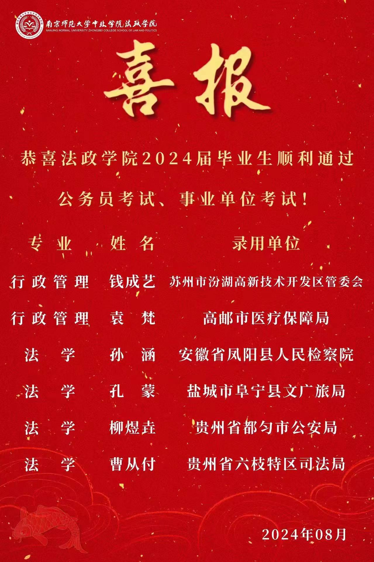 法政学院2024届毕业生公务员考试、事业单位考试喜报