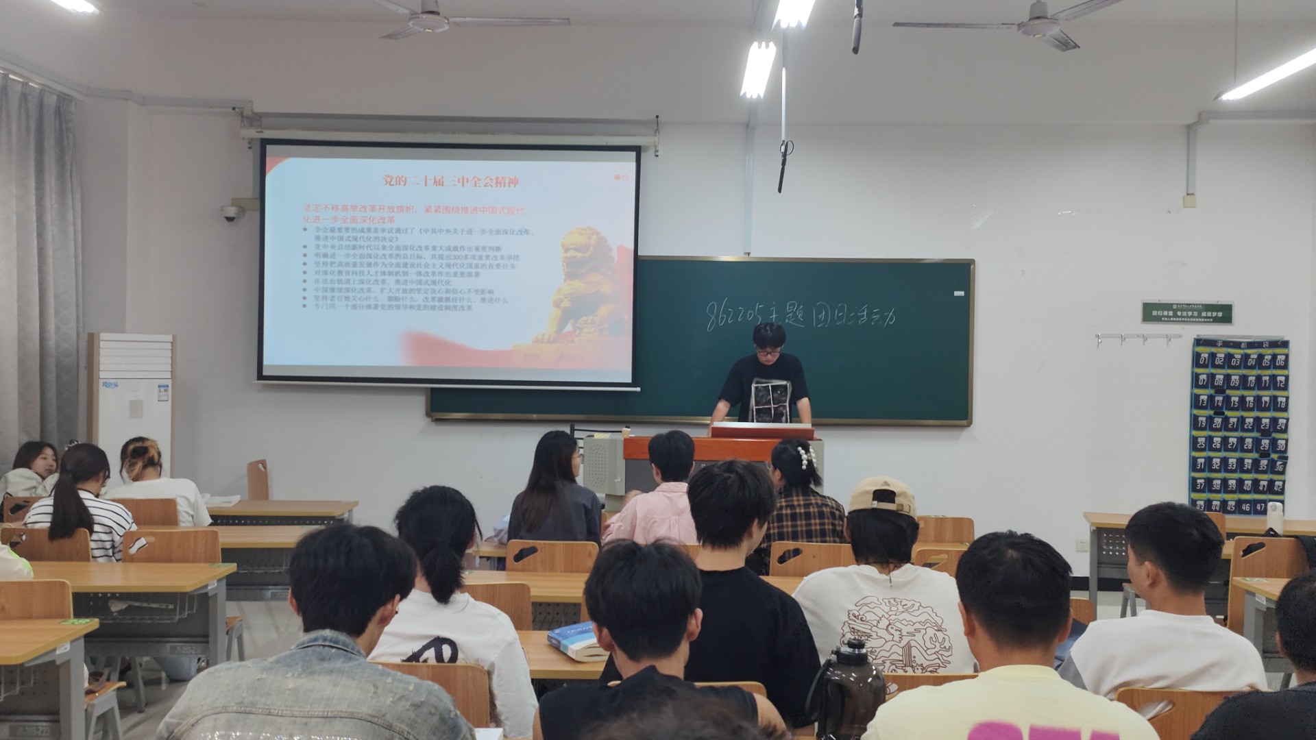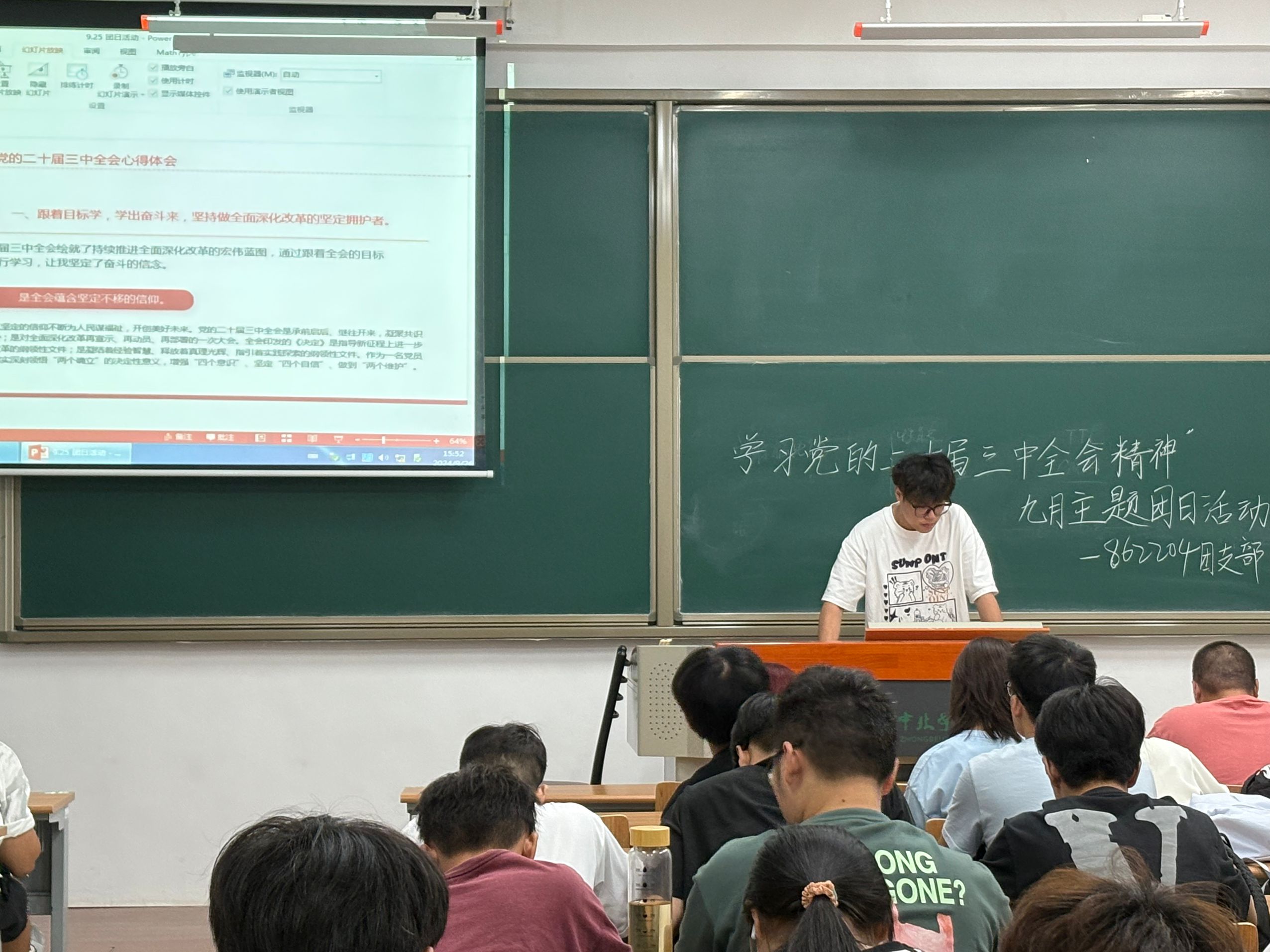 活动期间,团支书通过多媒体展示、文件解读等方式,带领同学们深入学习党的二十届三中全会精神。在学习过程中,同学们深刻领悟到党在国家发展进程中的核心领导地位,也深刻认识到全面深化改革、推进中国式现代化的伟大意义。最后,大家踊跃发言,表达了要将会议精神融入到日常学习生活,并不断提升自身素养的决心。