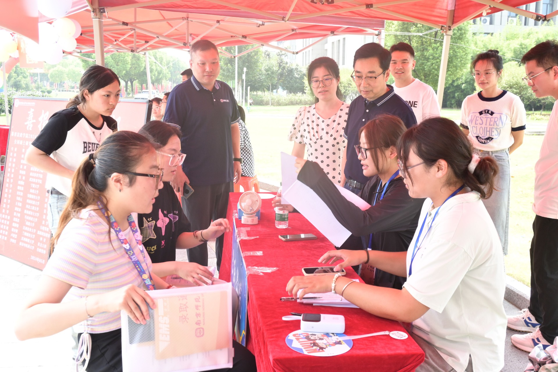 上午,法政学院院长韦宝平老师、法政学院党总支副书记王东惠老师、法政学院团委书记兼学工办主任李双双和新生辅导员们共同走访了迎新点,并对各位新生表达热烈欢迎之情,鼓励同学们新阶段仍要勇毅前进,绽放青春光彩。