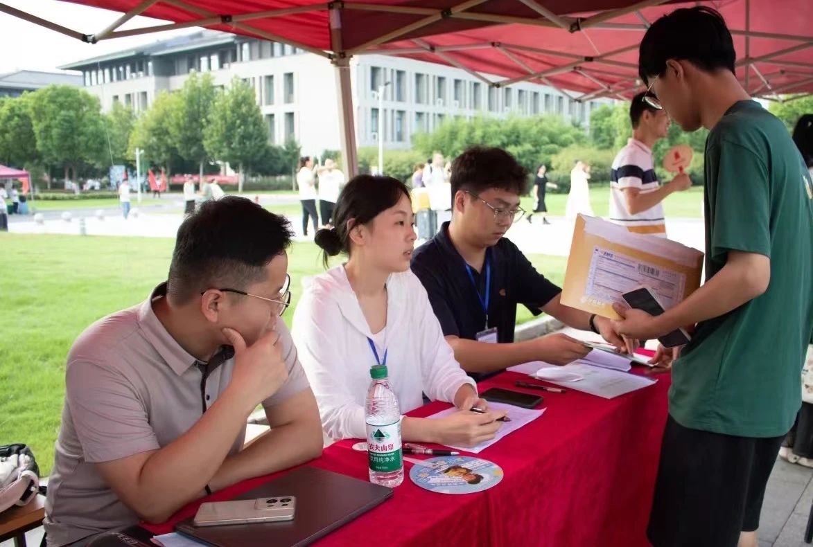 新生到校的接待工作有条不紊,精准对接的志愿者们接到新生后,详细地为他们介绍校园,并引领至新生签到处。在这里,接待人员热情地迎接每一位新同学,引导他们签到、确认个人信息等流程,并耐心地为他们答疑解惑。