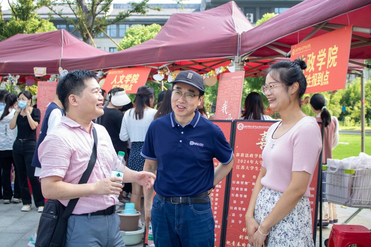 与此同时,在校园的一些角落,一幕幕温馨的画面被镜头捕捉。新生们与家人微笑地面向镜头,阳光洒在他们身上,为这美好的时刻增添了一抹温暖的光彩。