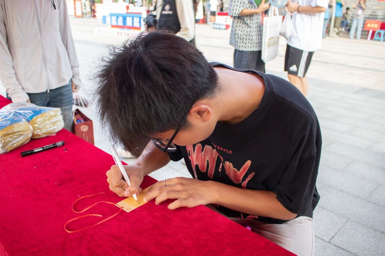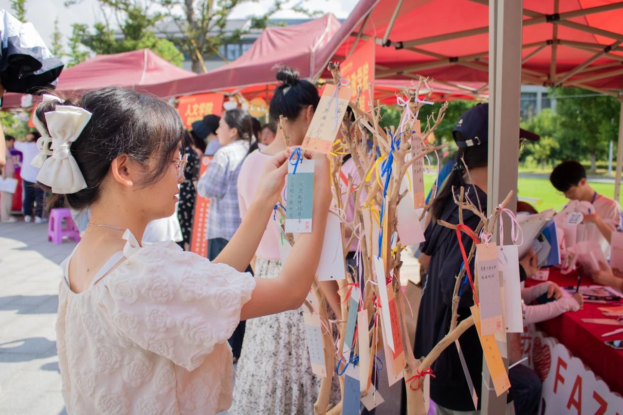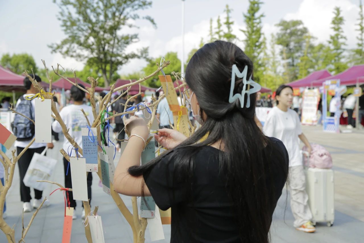 他们将写满梦想与希望的许愿卡一张张细心地挂在心愿树树梢,每一张许愿卡都寄托着学子对未来的期许和祝福。