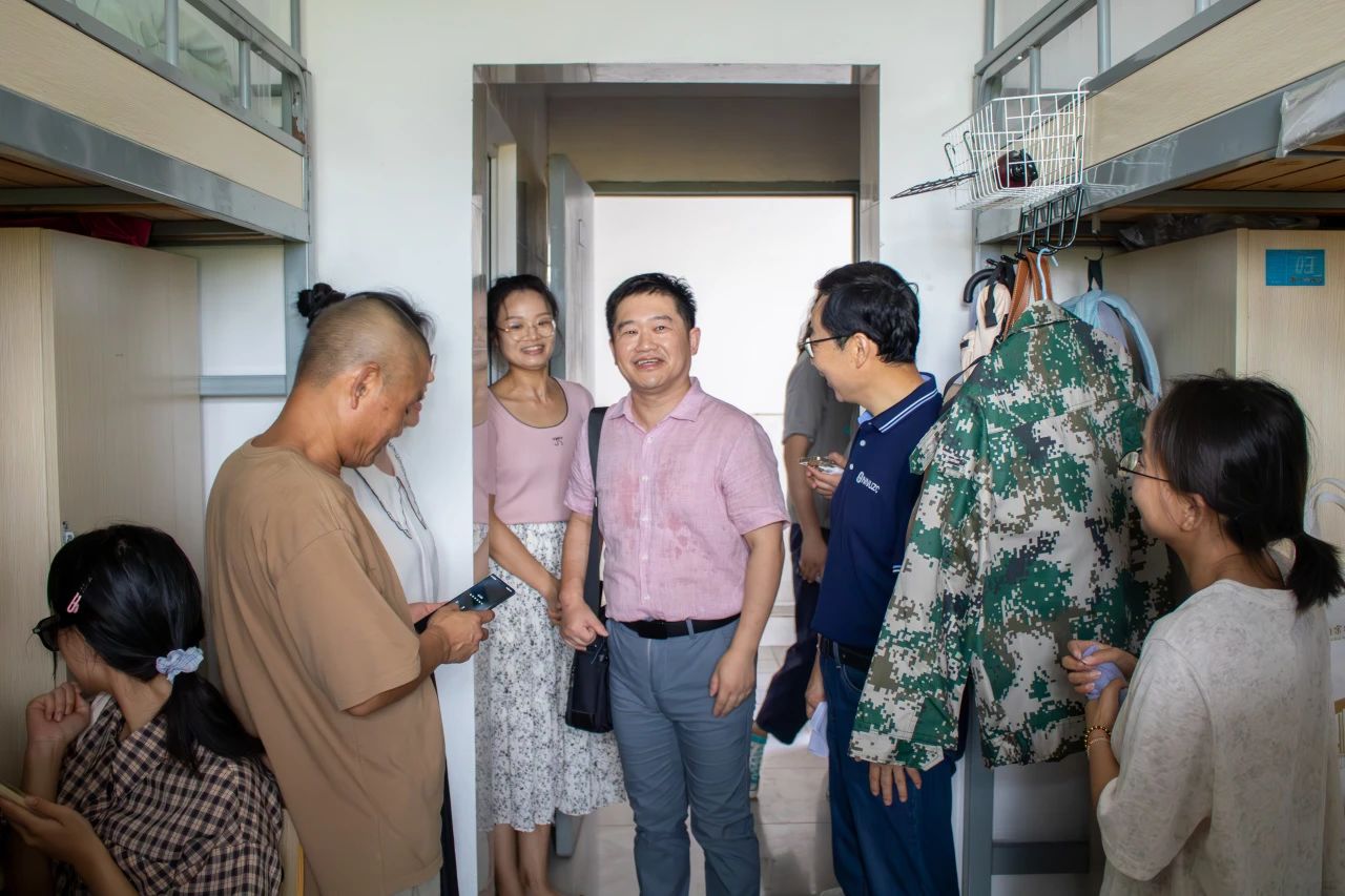 下午,法政学院院长韦宝平老师、法政学院党总支副书记王东惠老师、法政学院团委书记兼学工办主任李双双老师、新生辅导员与各班班主任共同走访2024级新生宿舍,与初入大学的新生们面对面交流,耐心倾听他们的入校感受,细致了解他们的住宿条件和生活状况。这不仅拉近了师生之间的距离,更为新生们营造了一个温馨、关怀的校园环境。