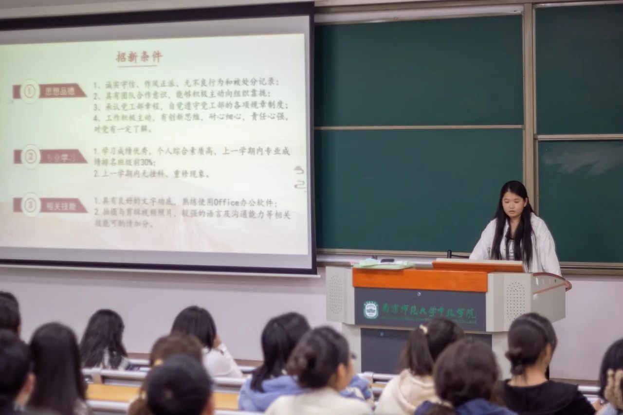 为了让同学们更好地了解我院学生组织,壮大学生干部队伍,吸纳优秀人才促进学生组织的发展,我院于9月22日20时在二教401室召开学生组织招新宣讲大会。本次宣讲会由王贵同学主持,辅导员杨孟老师出席会议,各学生组织负责人及24级全体同学与会。