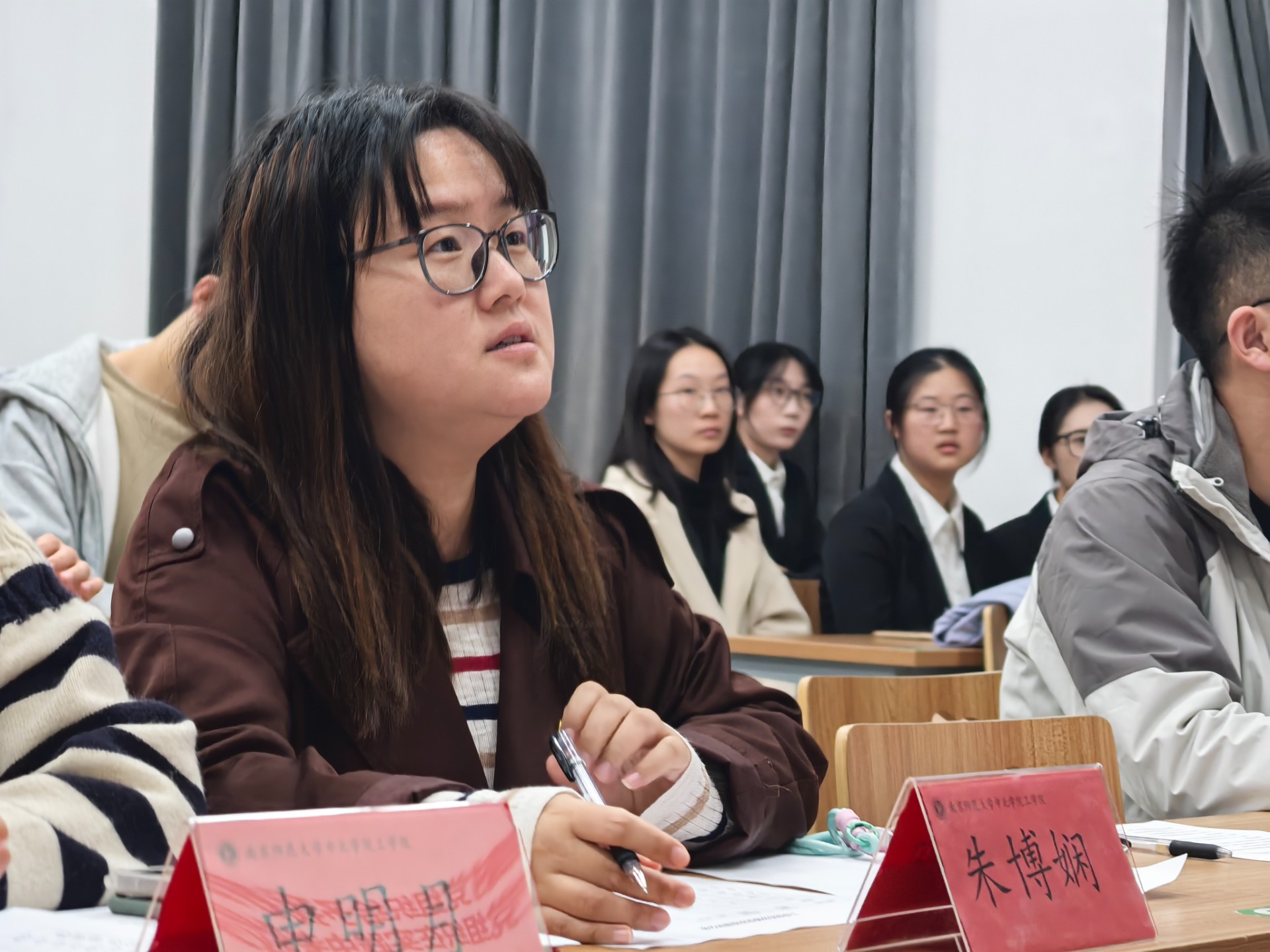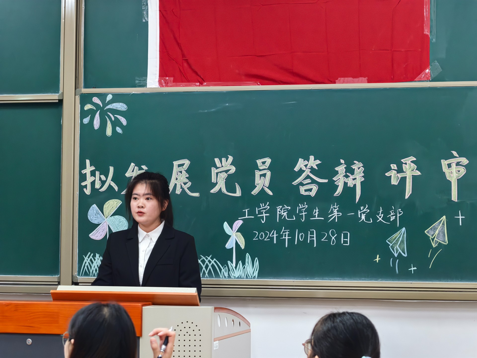 2024年10月28日,工学院学生第一党支部在敏学楼201教室顺利开展了2024年下半年发展对象评审答辩会。此次会议由陈沁怡同学主持,出席本次会议的有工学院学工办主任兼团委书记朱博娴老师、学生第一党支部支部书记申明月老师、辅导员胡一帆老师、陈沛婕老师和陶恒港老师,全体学生党员和入党积极分子积极参加。