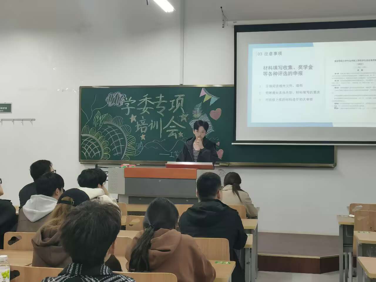 为更好地促进工学院优良学风建设,工学院学习部于2024年10月29日下午在敏行楼111教室开展了2024年学习委员专项培训会。此次学习委员专项培训会由工学院学习部钱雨琪同学主持,工学院学工办主任兼团委书记朱博娴老师、辅导员陈沛婕老师出席培训会,工学院学习委员积极参加。