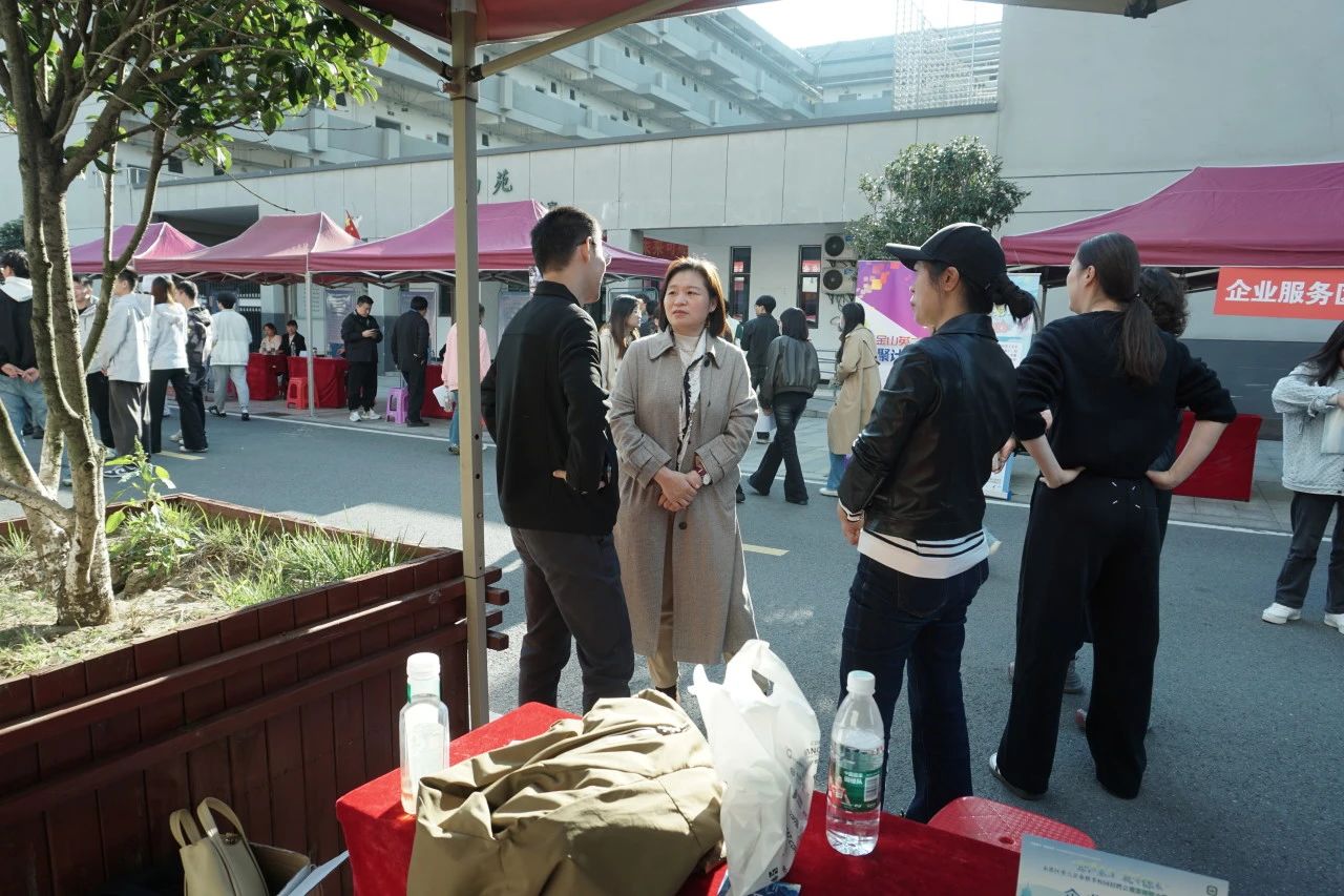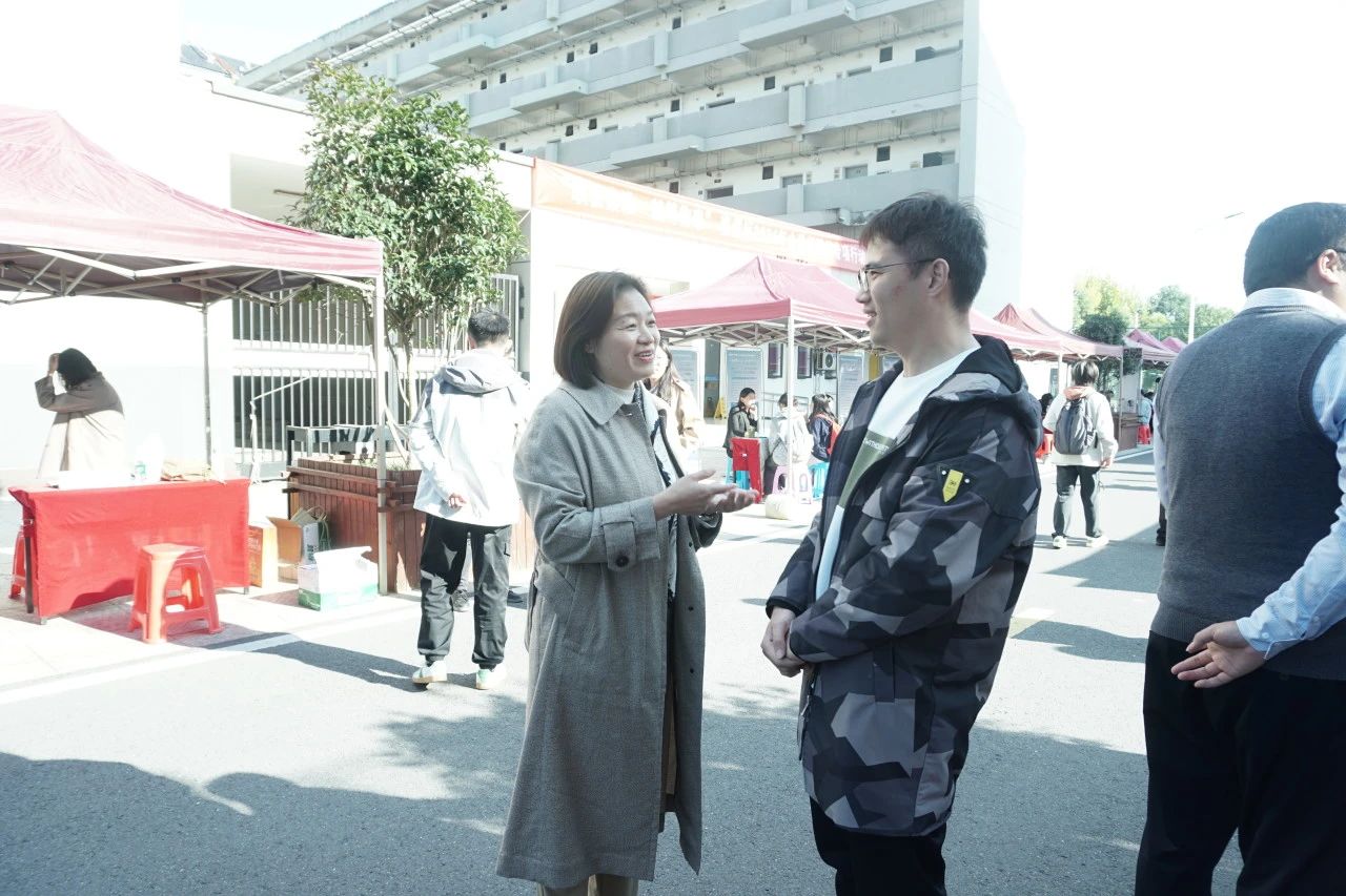 同时,党总支书记刘钱凤老师在现场与多家用人单位展开深入交流,详细询问招聘岗位的基本信息及具体用人标准。随后,她亲切地与同学们交谈,针对学生的特点提供细致的就业指导。