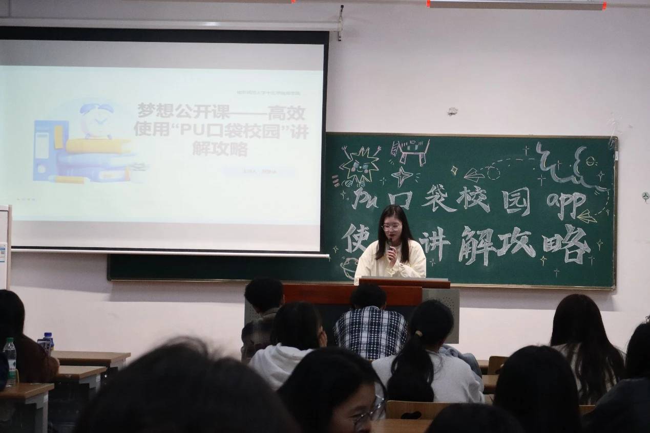 为进一步加深商学院2024级新生对第二课堂软件“PU口袋校园”的了解,10月30日18:00我院在敏学楼214开展了梦想公开课——“PU口袋校园”讲解攻略活动,本次活动由赵梦依同学主持讲解。