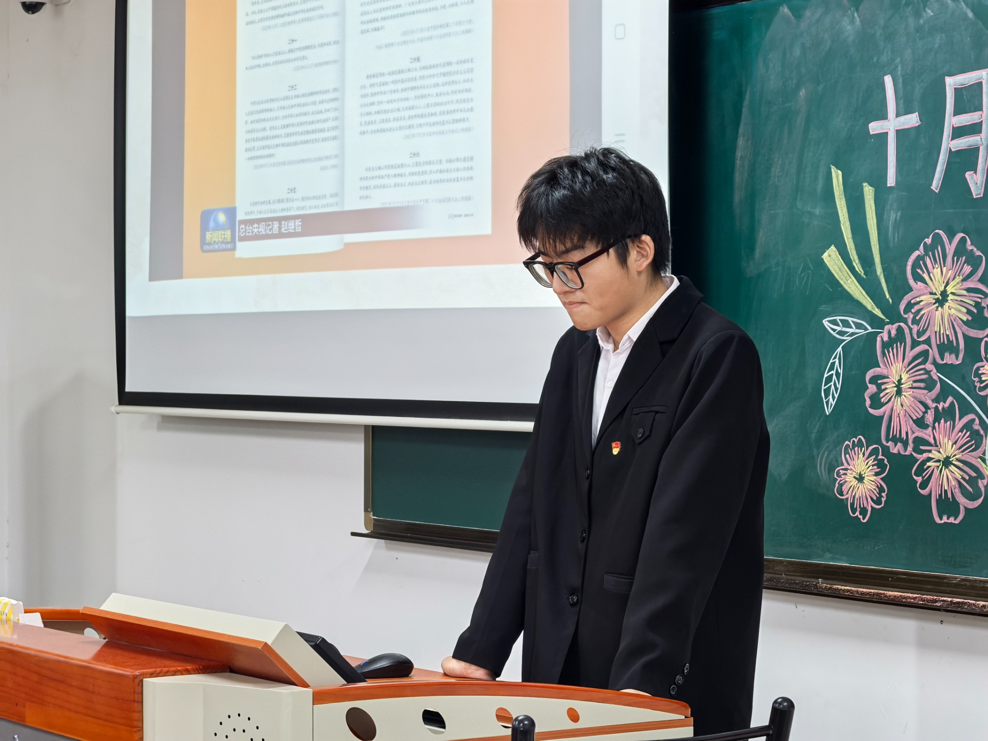 为进一步提高党员的党性修养,工学院学生第一党支部于2024年10月31日下午在敏行楼215教室顺利开展10月份政治理论学习。此次会议由学生党员刘恒源同志主持,工学院学生第一党支部支部书记申明月老师及全体学生党员积极参加。